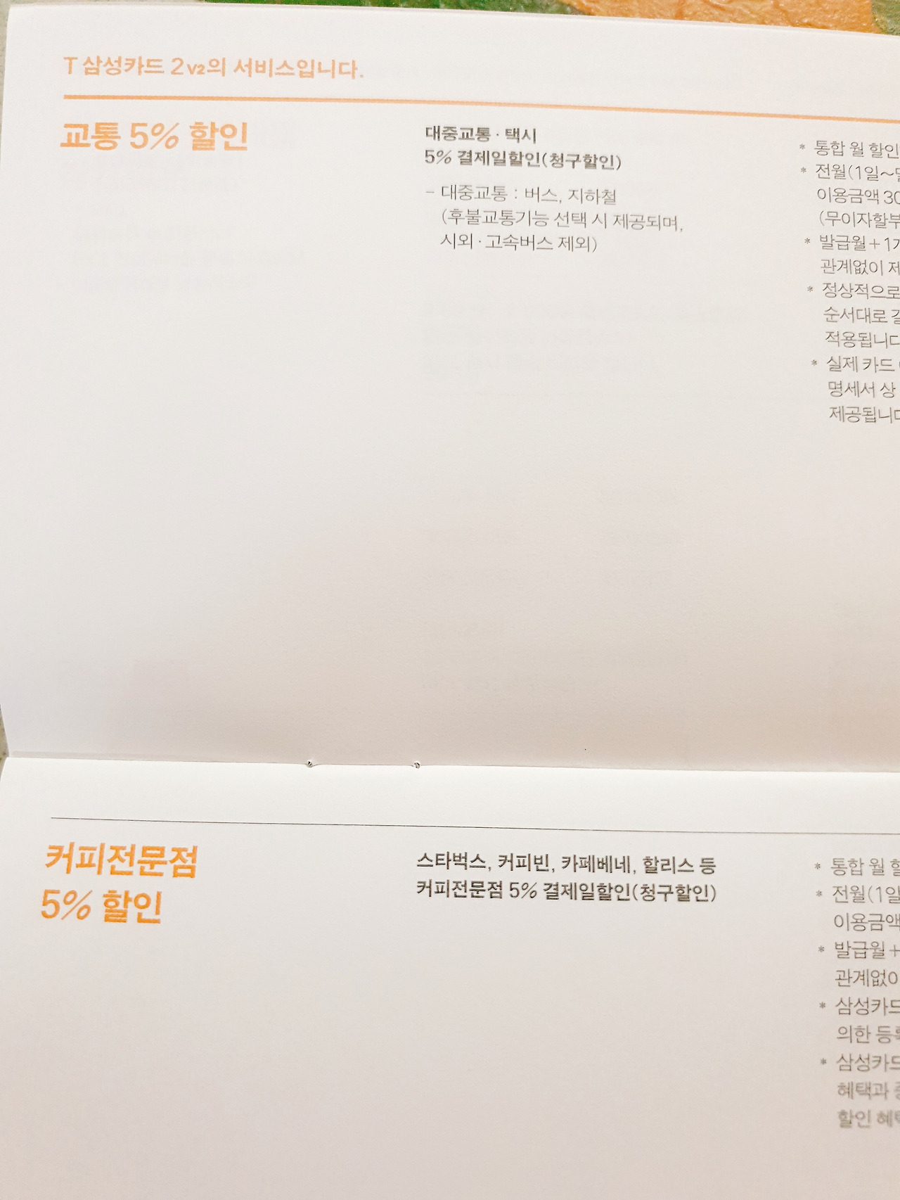 대중교통 택시 5%, 커피전문점 5% 할인