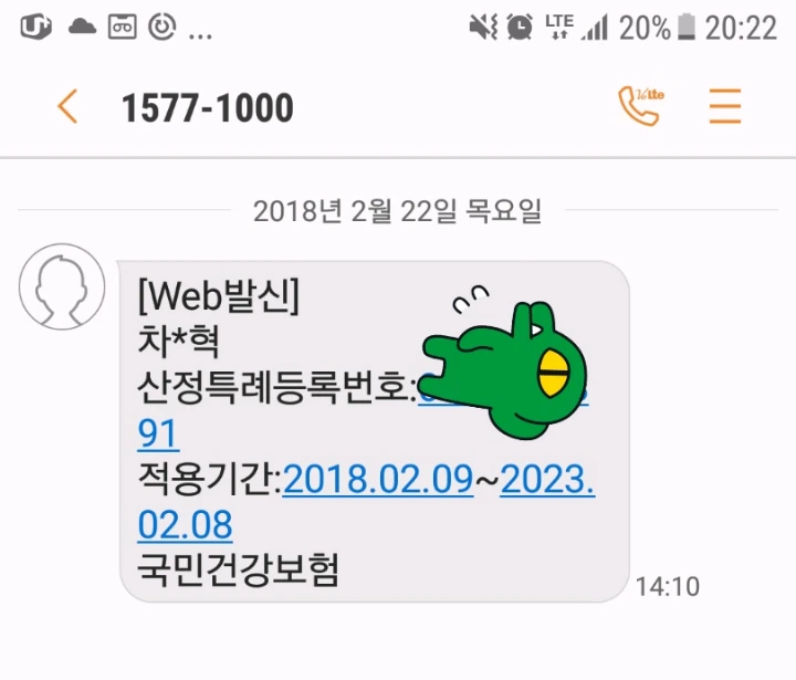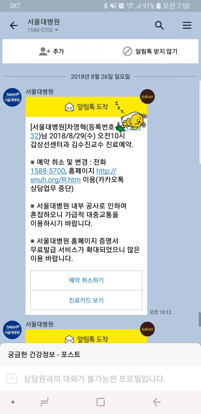수술하고 받은 문자다.