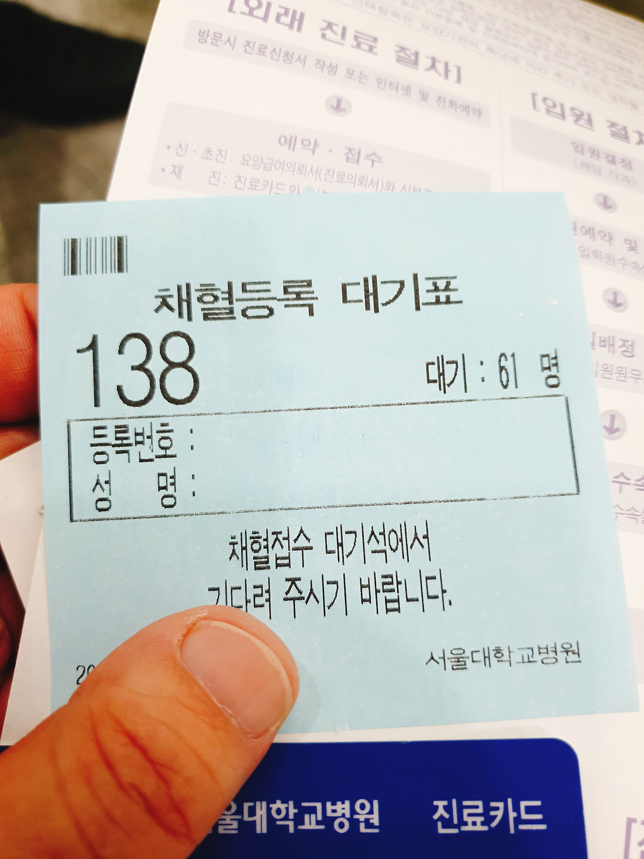 일찍 온 이유는 채혈하고 그 결과를 당일 확인하는 것이다.