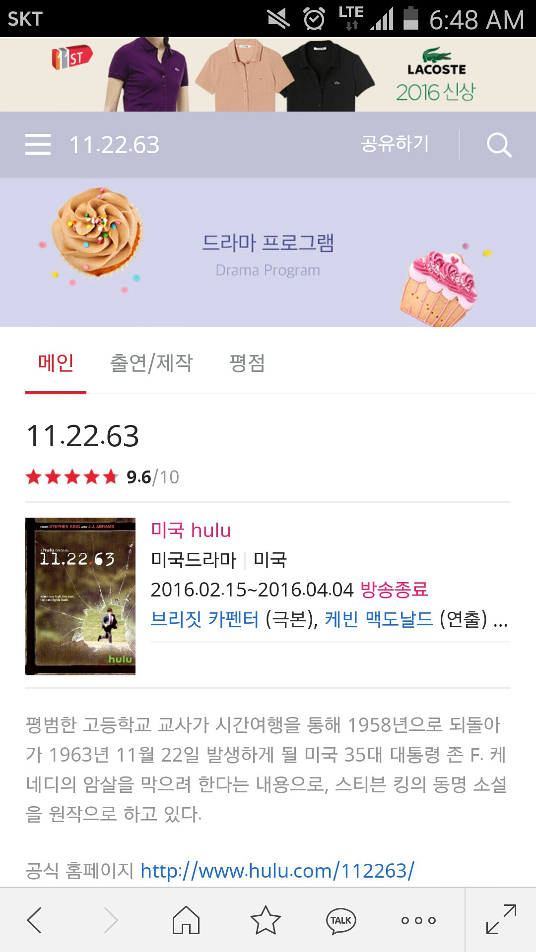실제 회사 지인들에게 이 미드를 추천하는데 JFK 암살과 관련 된 미국드라마라고 했고, 여전히 영화제목을 헷갈려 다른 이름으로 알려주었다가 번복을 하게 되었다. 영화제목의 의미를 모르니 잘 외워지지 않았던 것이다. 처음에는 맨 뒷자리 숫자의 의미를 몰라 후배가 추측한 맨 뒷자리는 총의 구경을 쩜으로 표현하는 경우도 있어 63미리 구경이라는 이론에 공감도 했지 말이다.