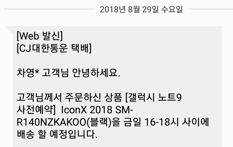 오늘 받은 문자, 그리고 삼성이벤트몰에서도 배송상태를 확인이 가능하다.