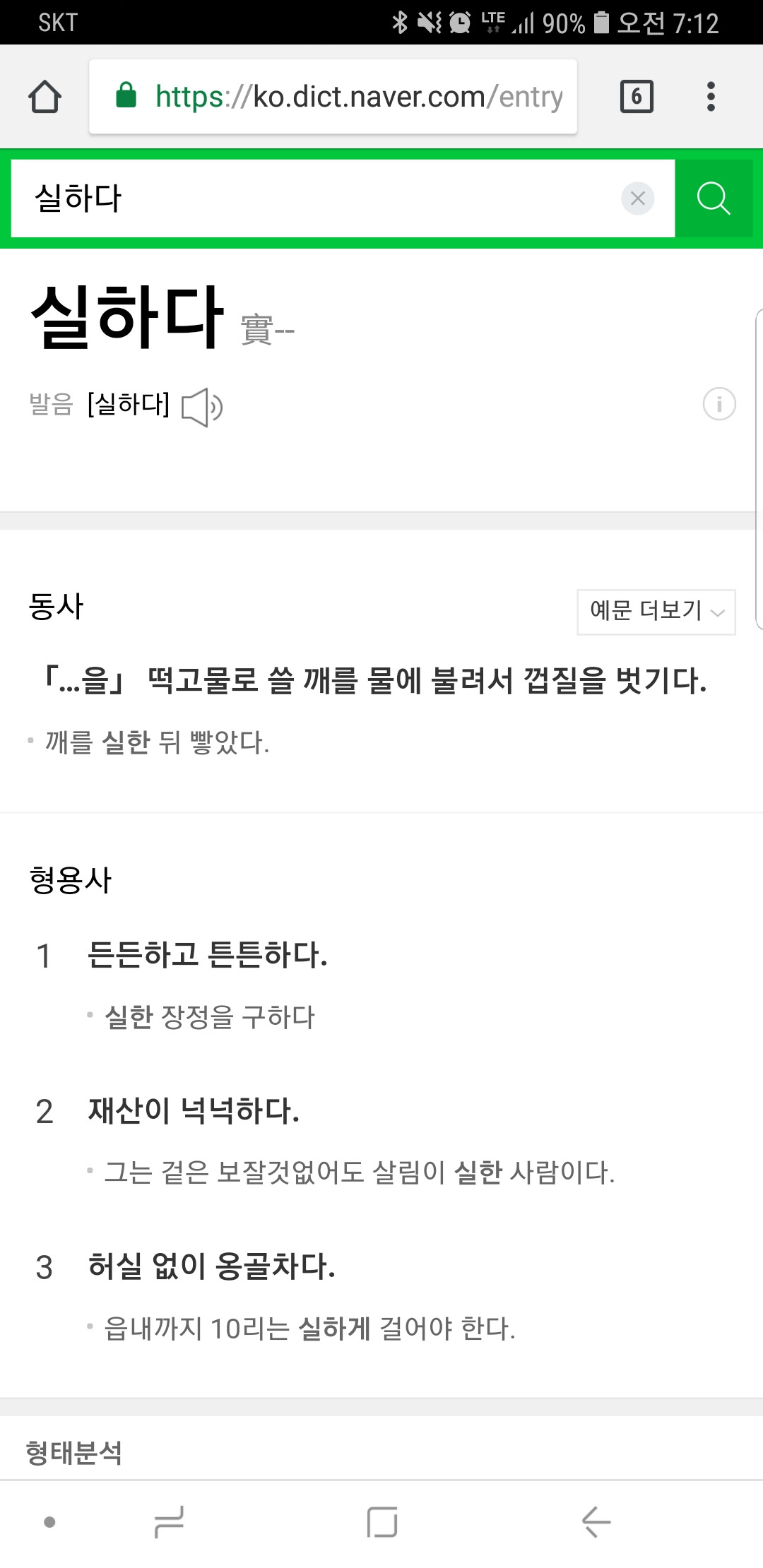 실하다. 사전적 의미