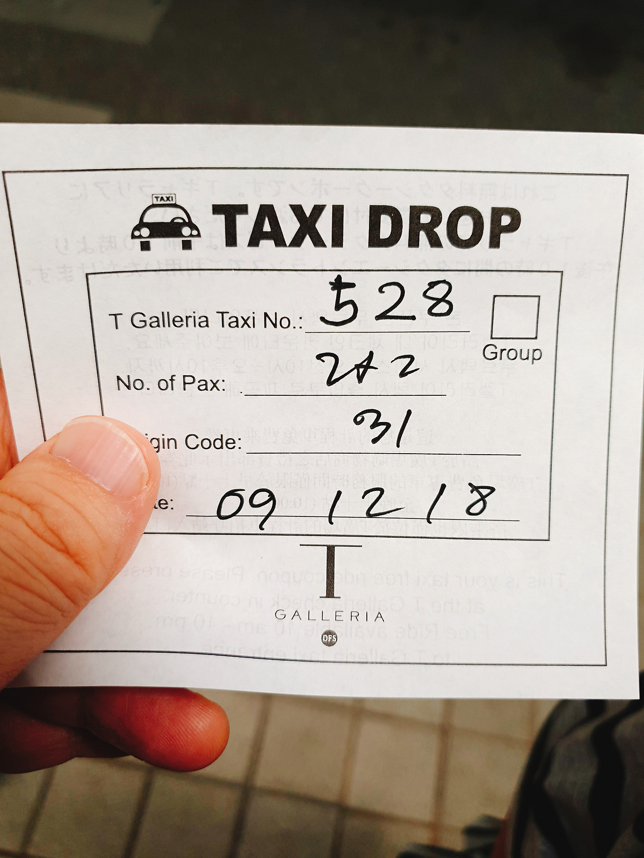 택시에서 내린 내역을 면세점 데스크에 건네주면 된다.