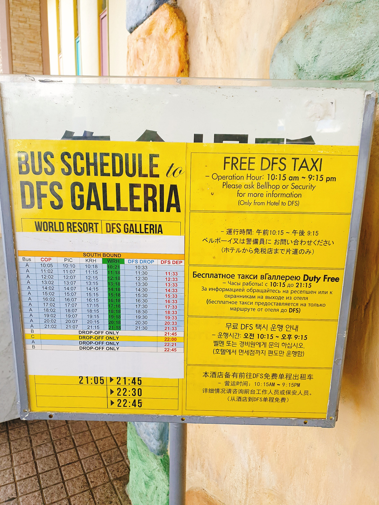 단 셔틀버스는 여기 저기 들렸다가 면세점에 도착해서 시간이 더 걸린다고 호텔 앞 벨보이아 무료택시가 불러주었다. 벨을 누르니 바로 택시가 왔다.