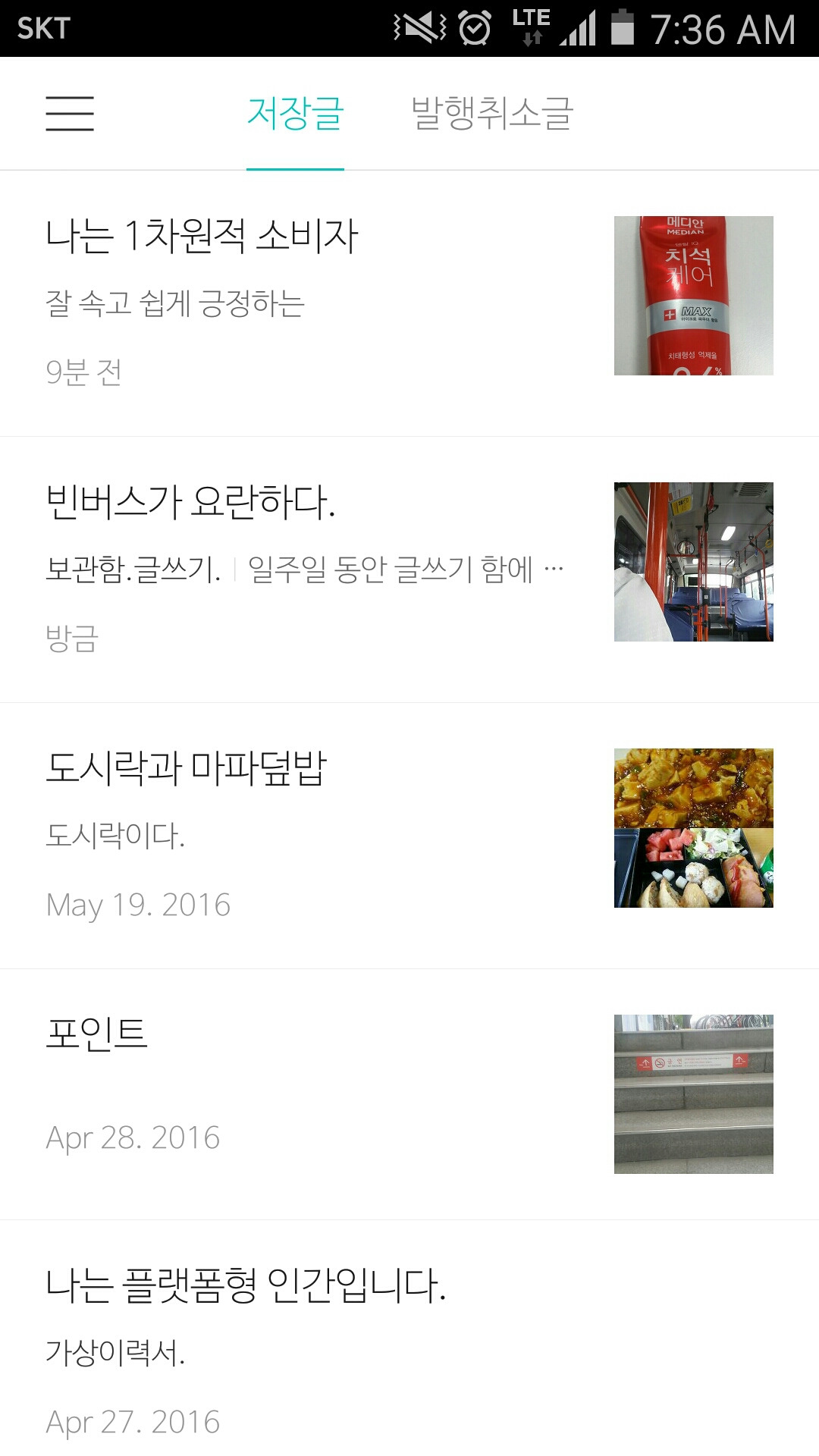 무언가 생각날때 마다 메모로 제목이나 문구들 그리고 관련 된 사진을 브런치에 첨부해 놓는다. 그리고 발행 아닌 저장으로 글을 나름 보관한다. 그곤 글쓰기의 재료이며, 아이디어, 생각의 스케치와 정리인 것이다.