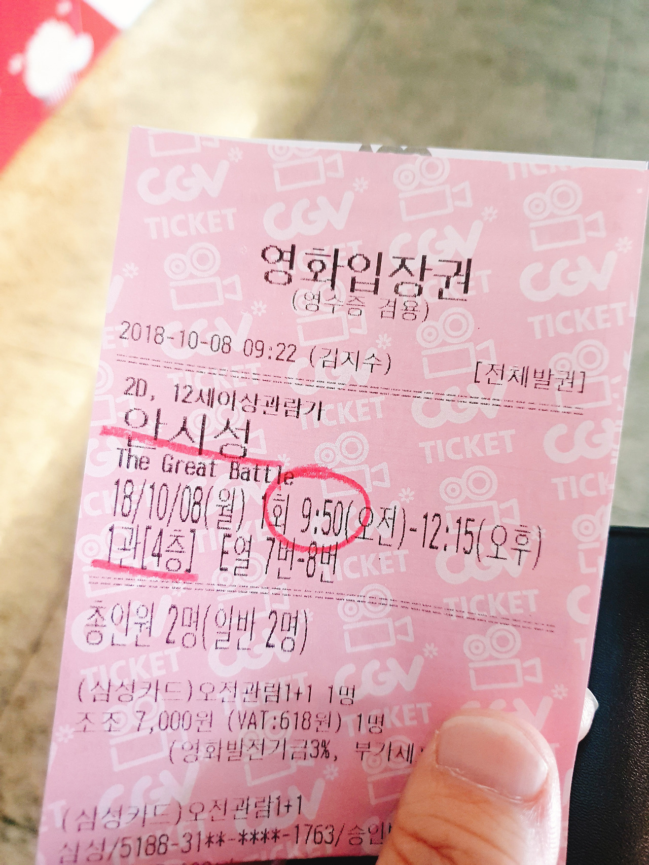 심성카드로 오전관람 1+1 혜택이다. 대박!!