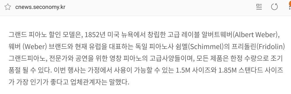 신문기사로는 조금약하다. 직접 그랜드피아노를 봐야 정말 그랜드 그랜드한 혜택임을 알 수 있을 것이다.
