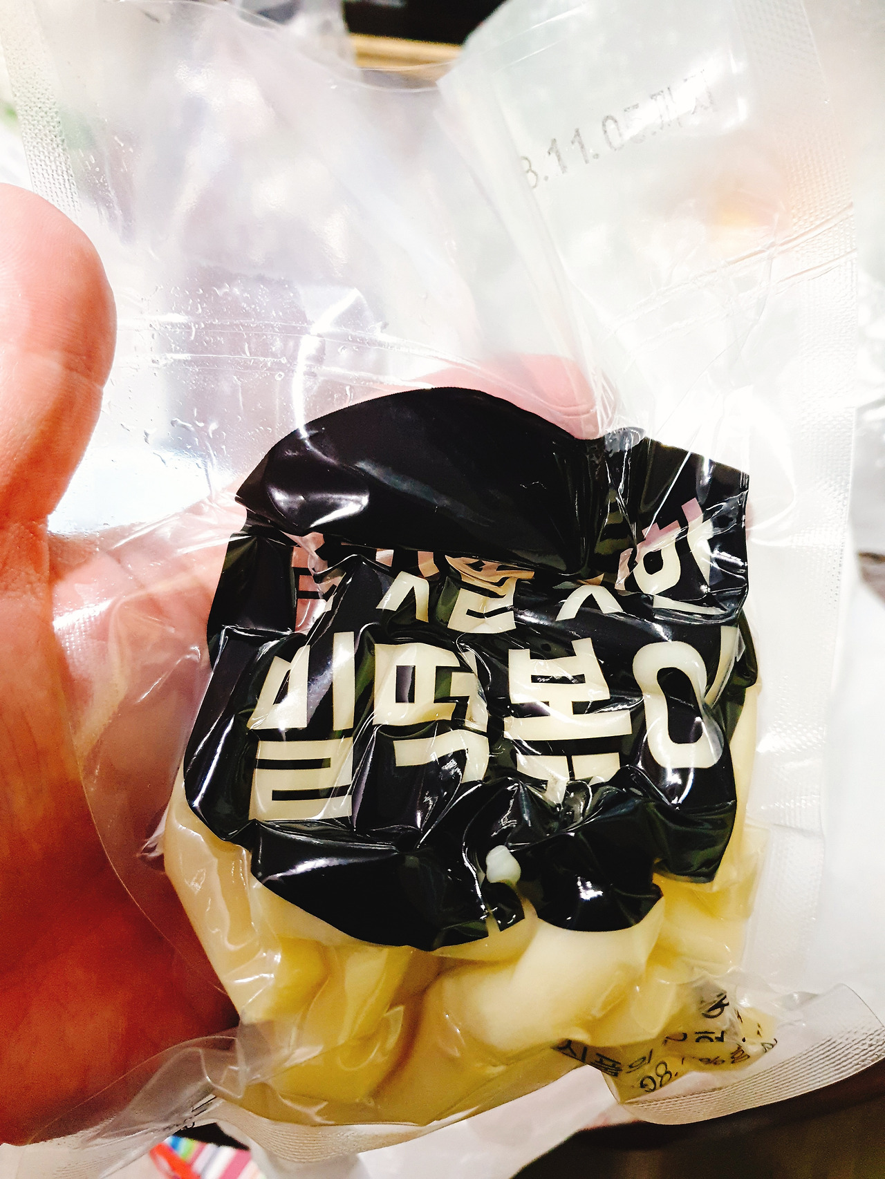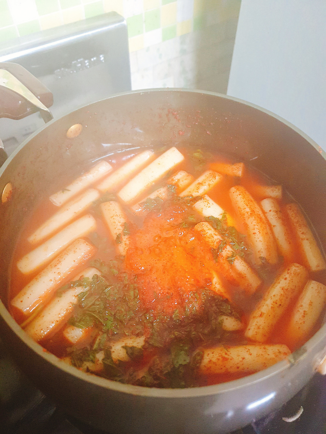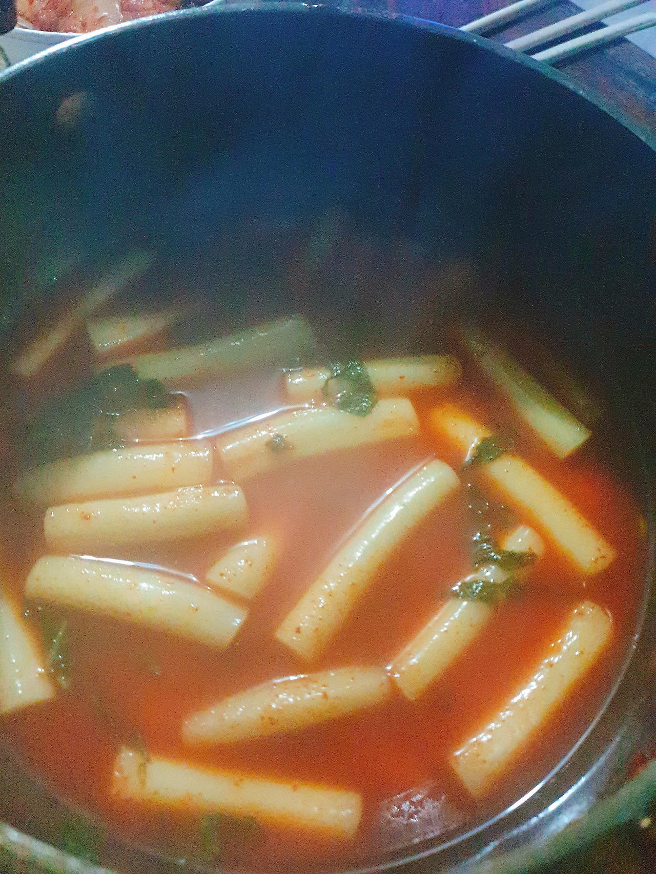 끓이면 끝, 떡은 불려줘야 한다. 용산에서 내가 준비해 왔다.