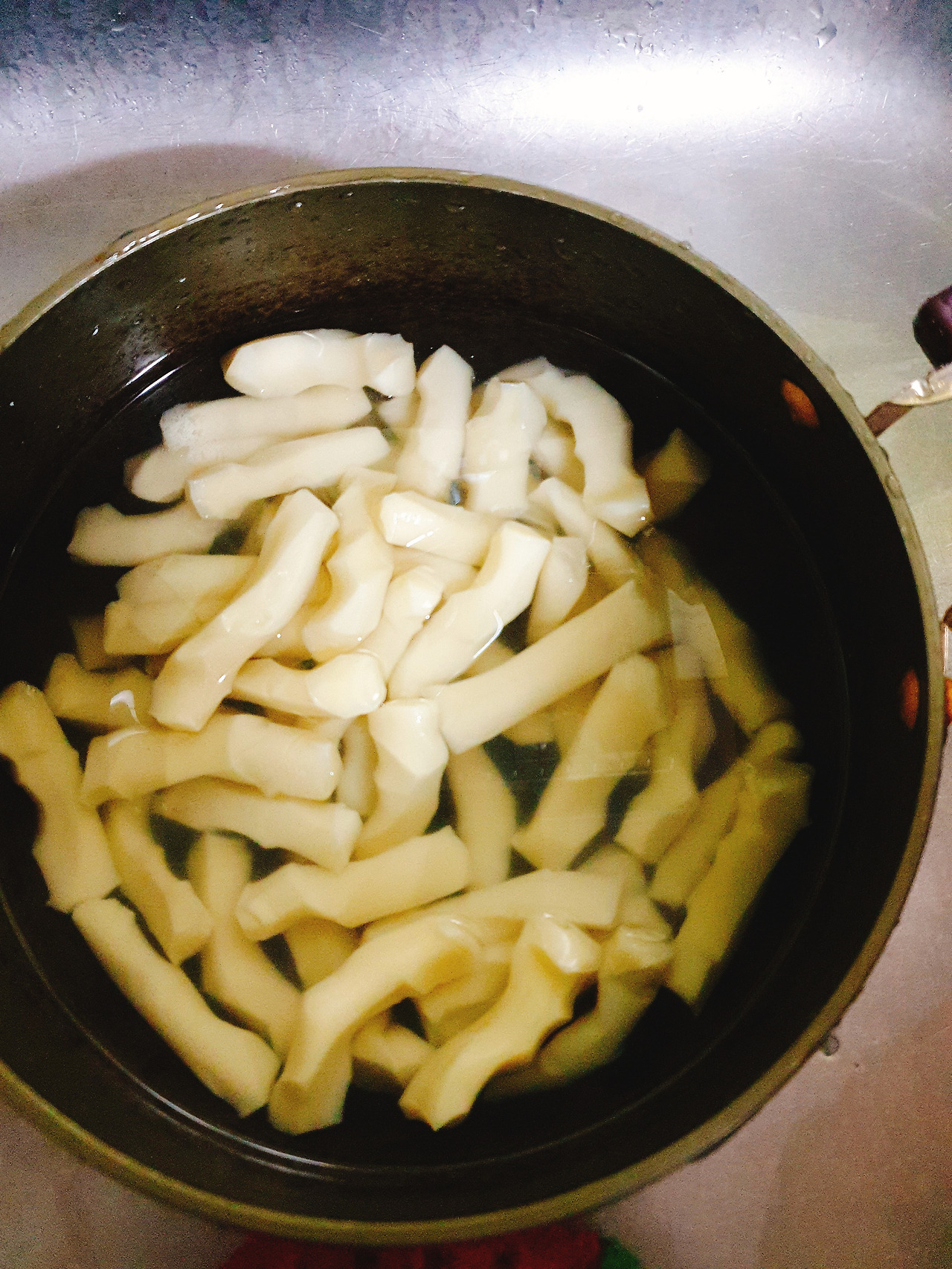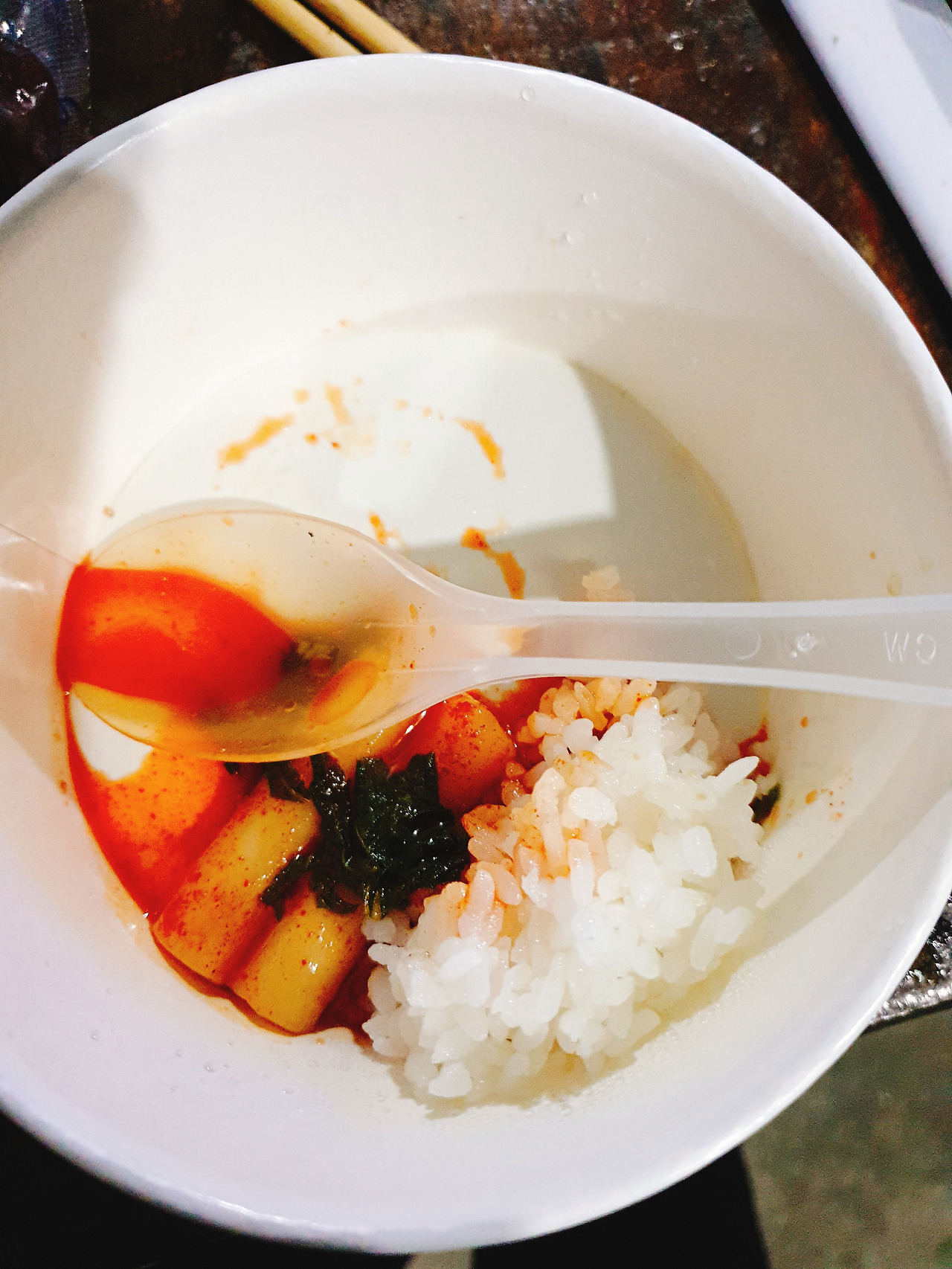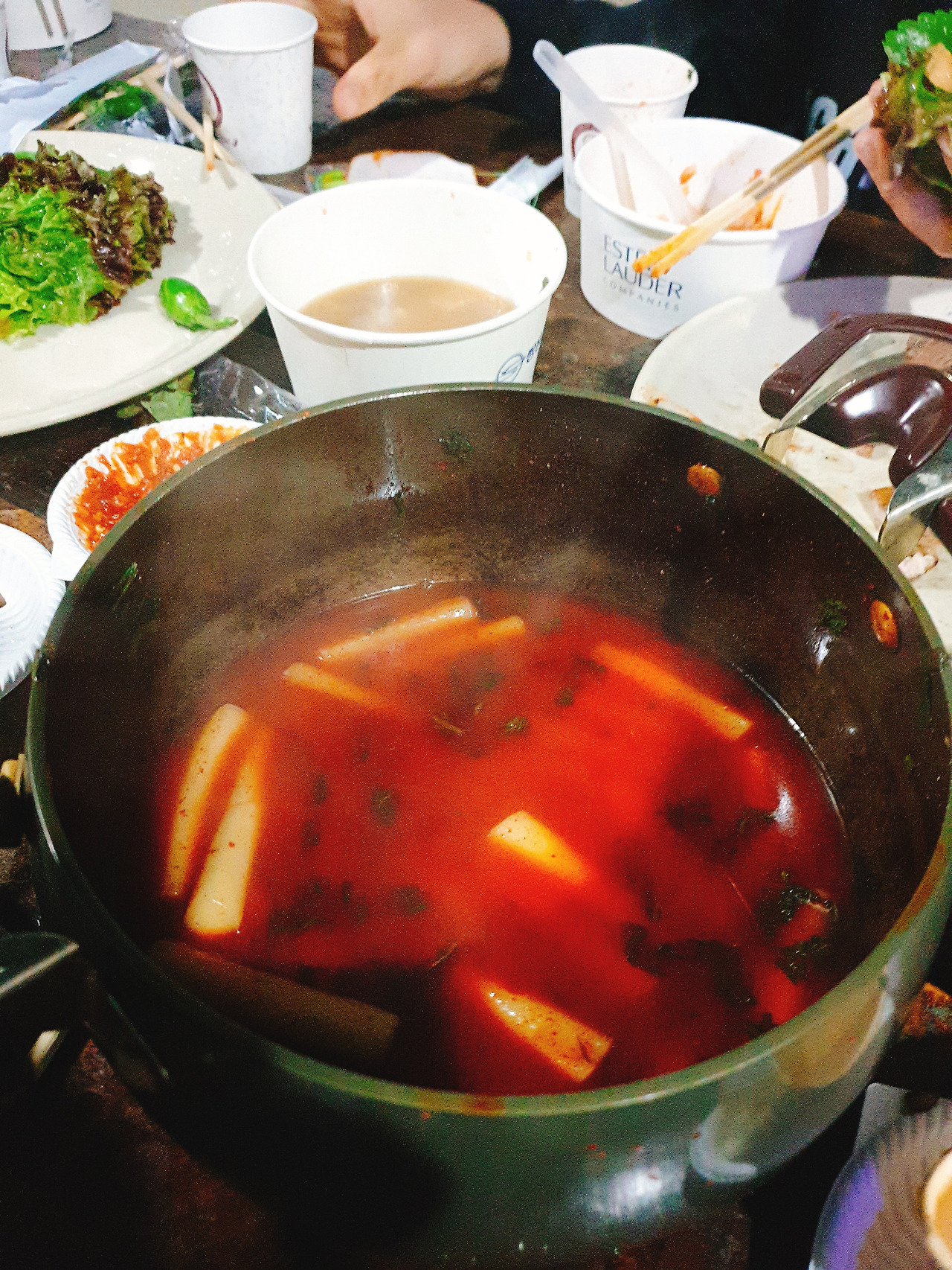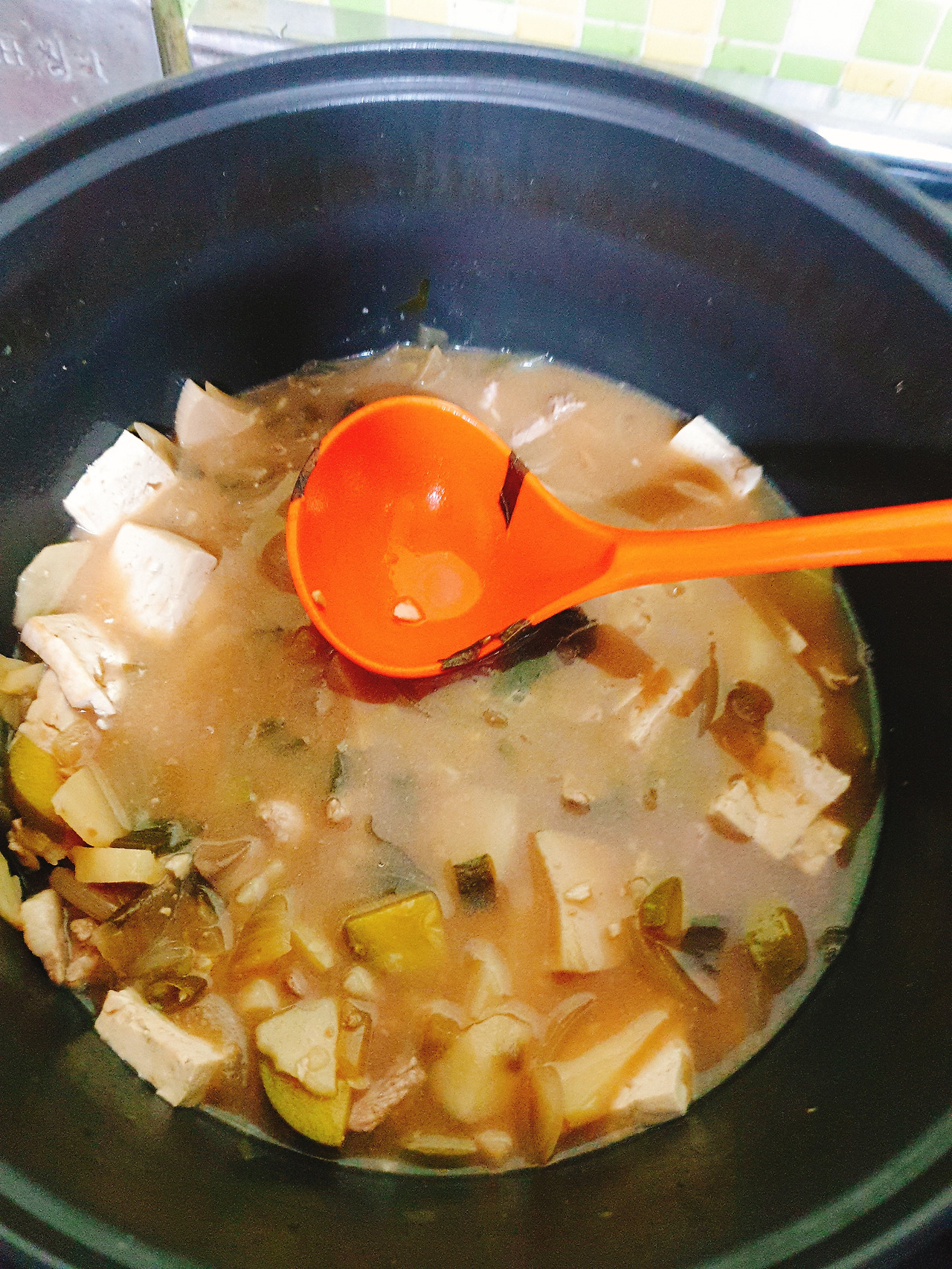 끓이면 끝, 떡은 불려줘야 한다. 용산에서 내가 준비해 왔다.