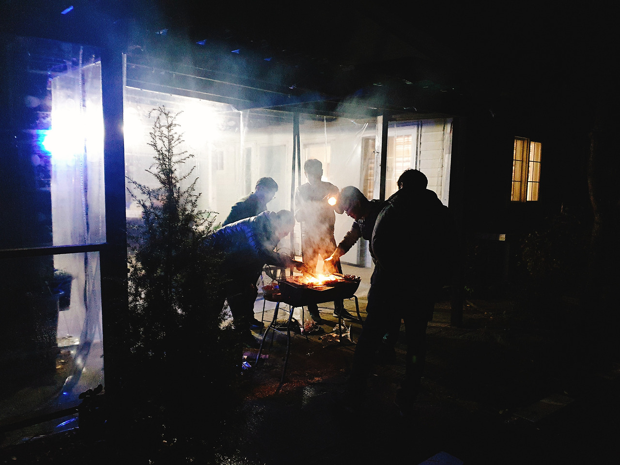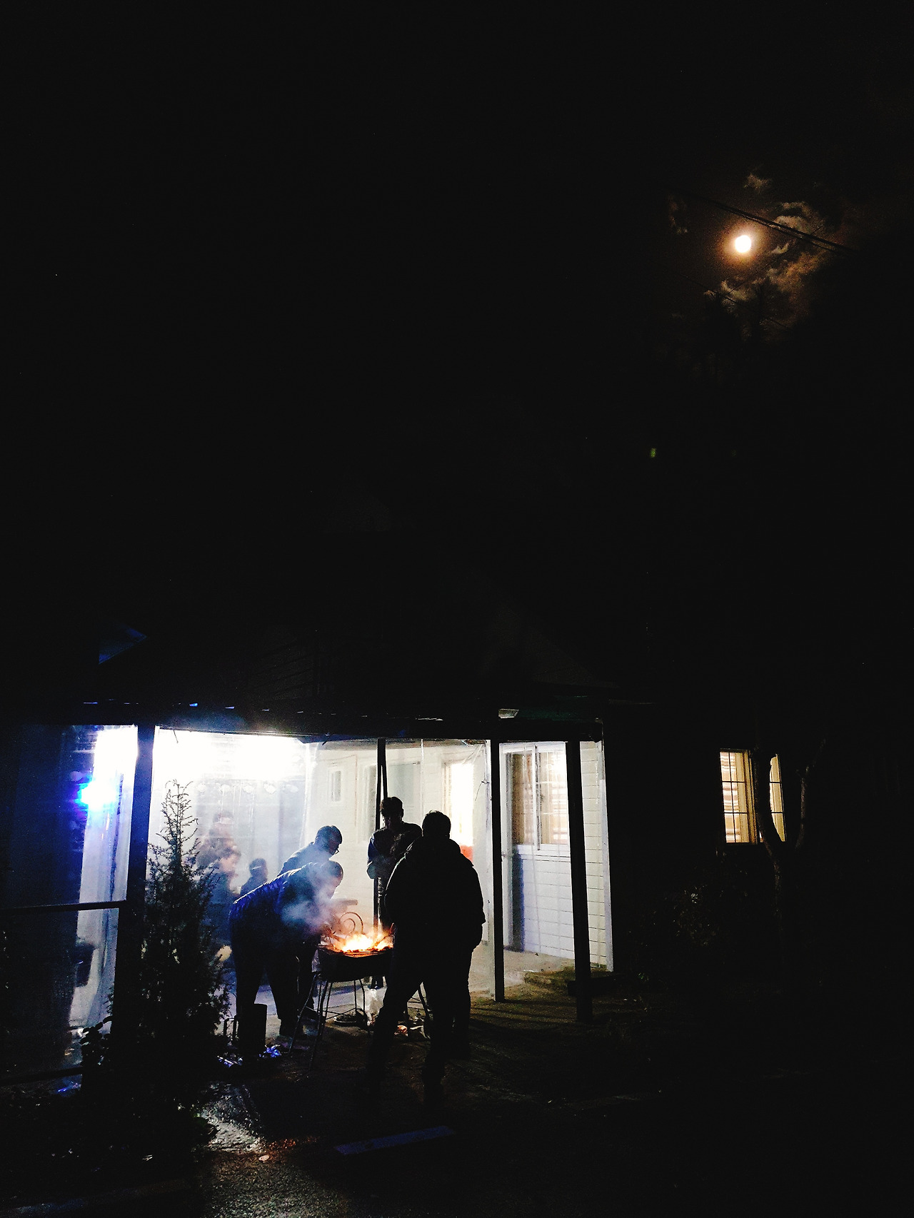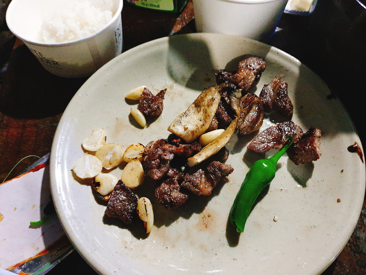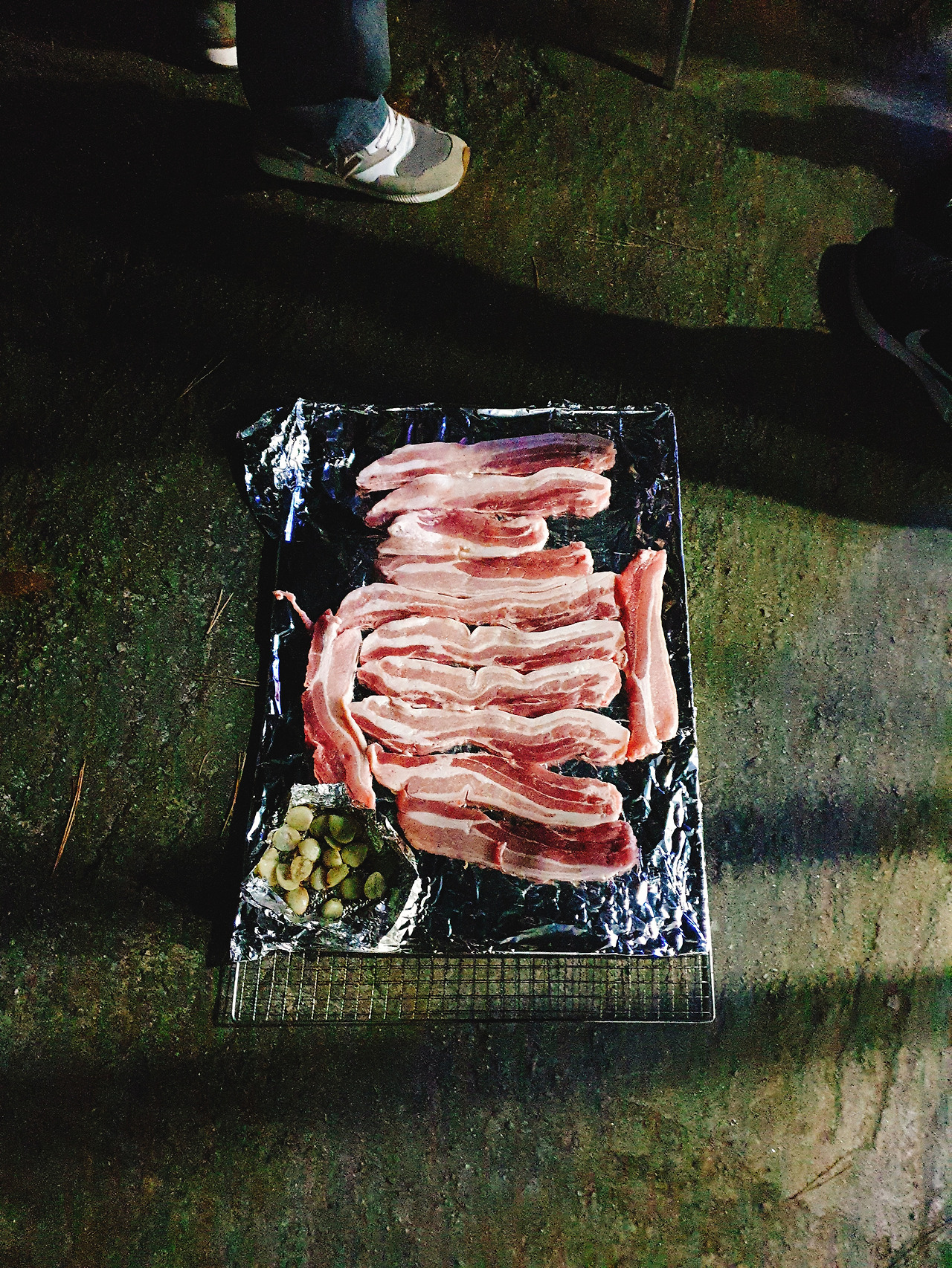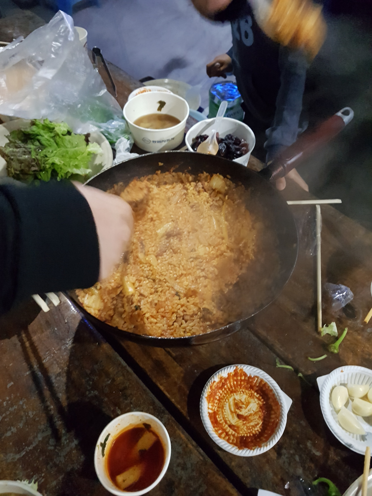 목살-된장국-쏘세지-떡뽁이-삼겹살-포도-숯불고구마-숯불계란-밀크티-커피-숯불감자-볶음밥-그리고 잠이 들다.