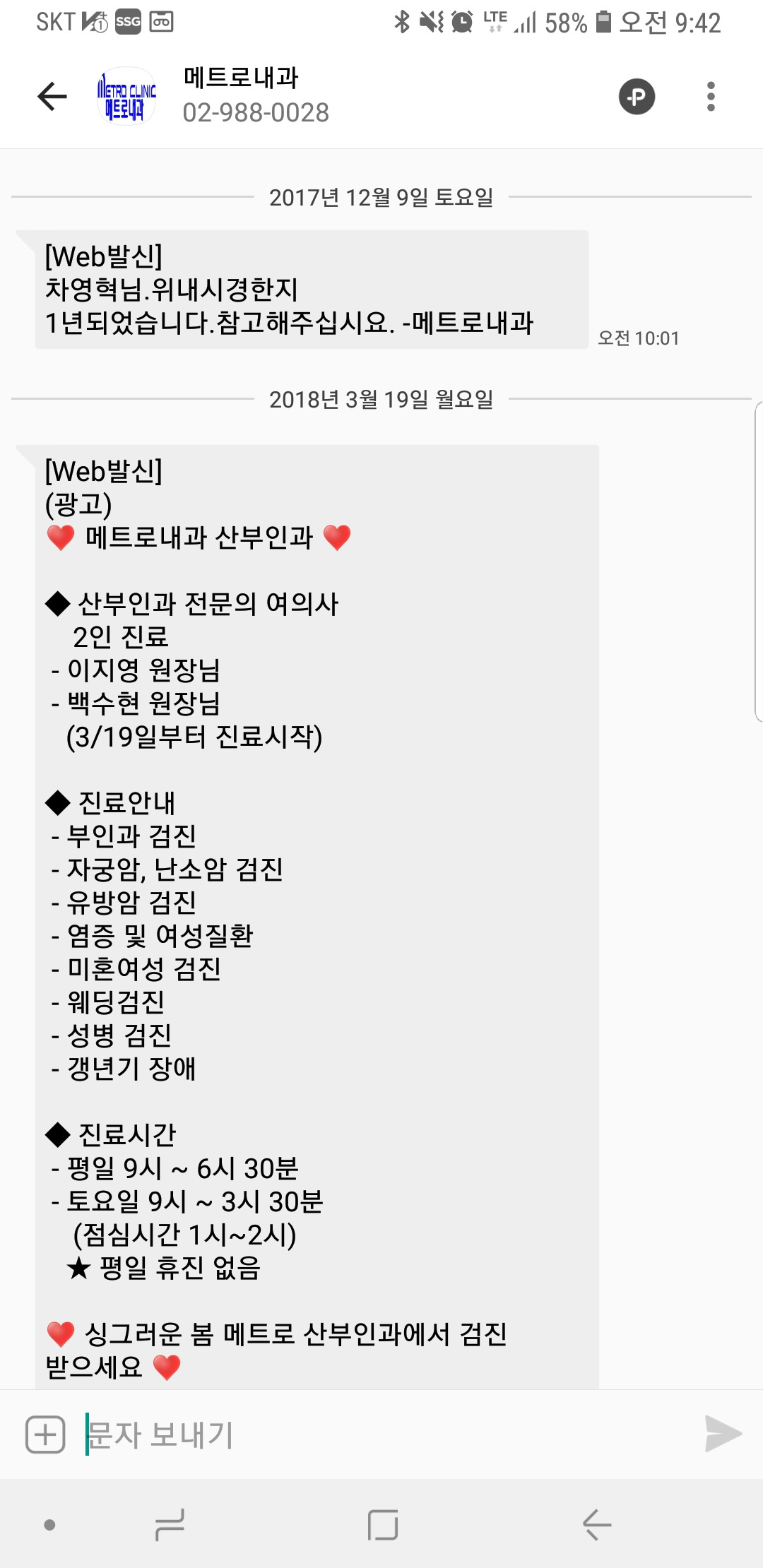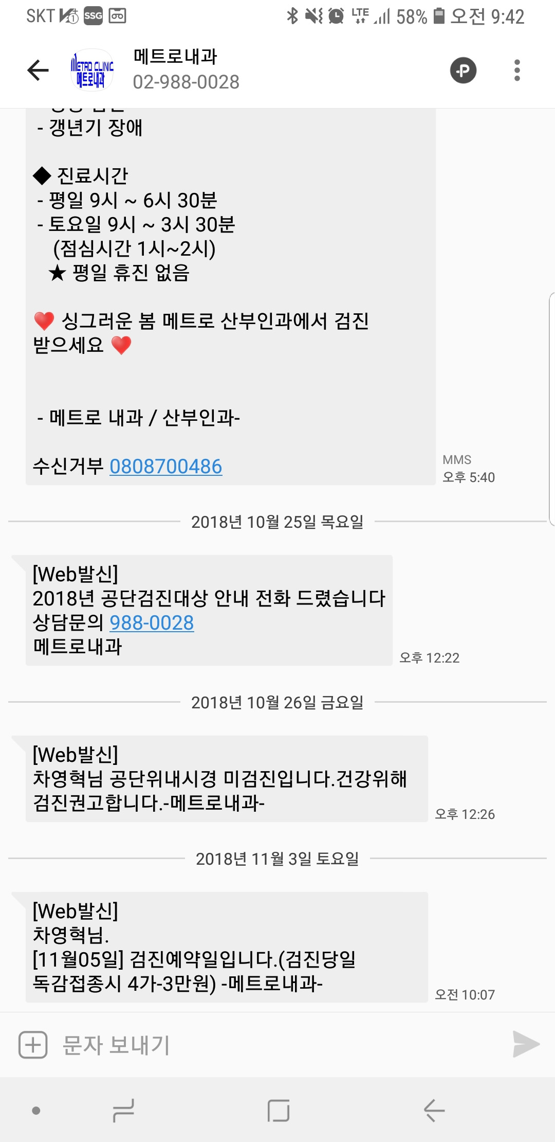 위내시경을 2년전에 이곳 메트로내과에서 받았는데 2년이 지나니까 문자가 온다. 국가에서 하는 위내시경이라 회사에서도 꼭 하라고 문자가 왔다.