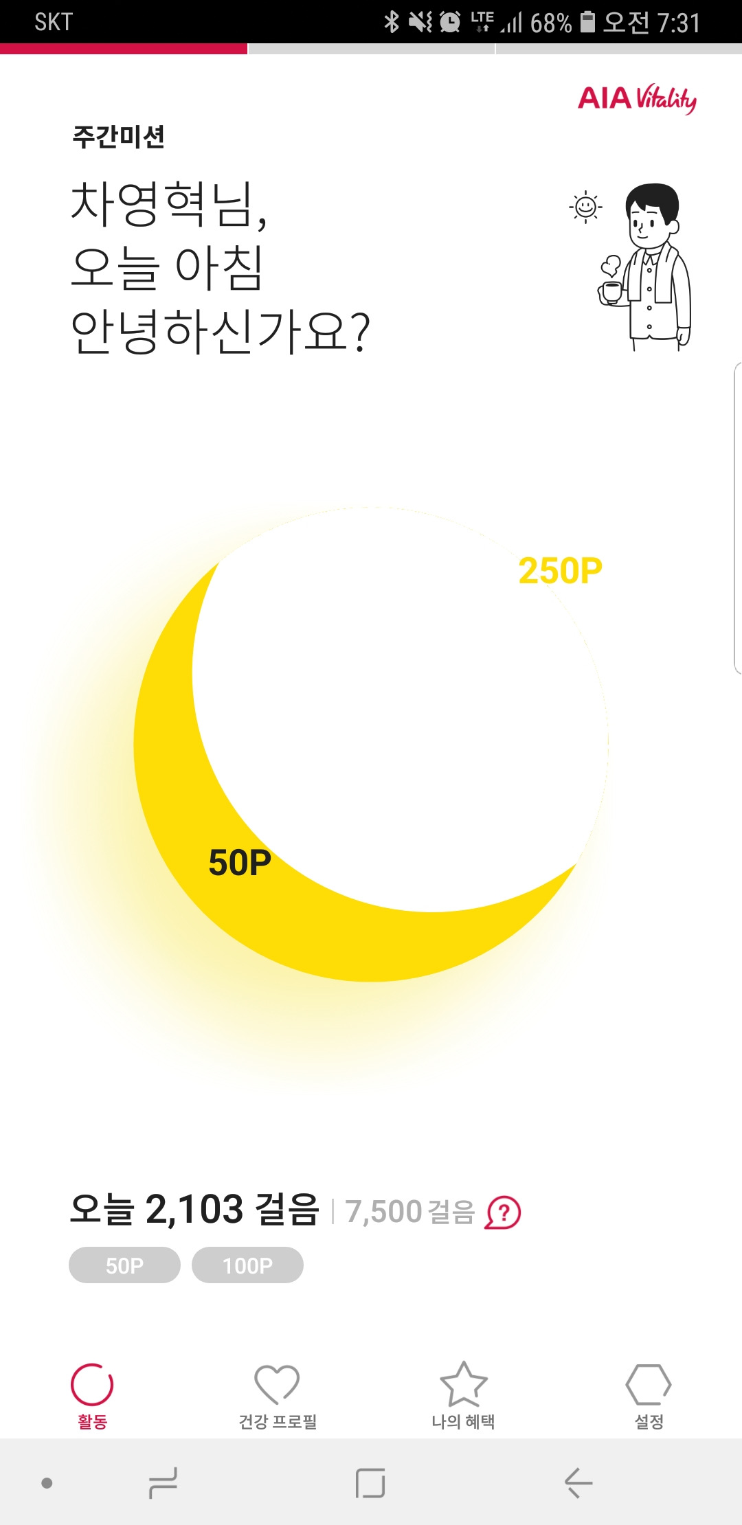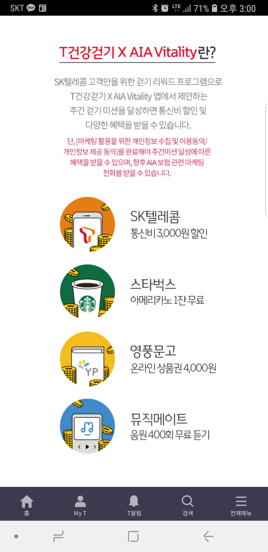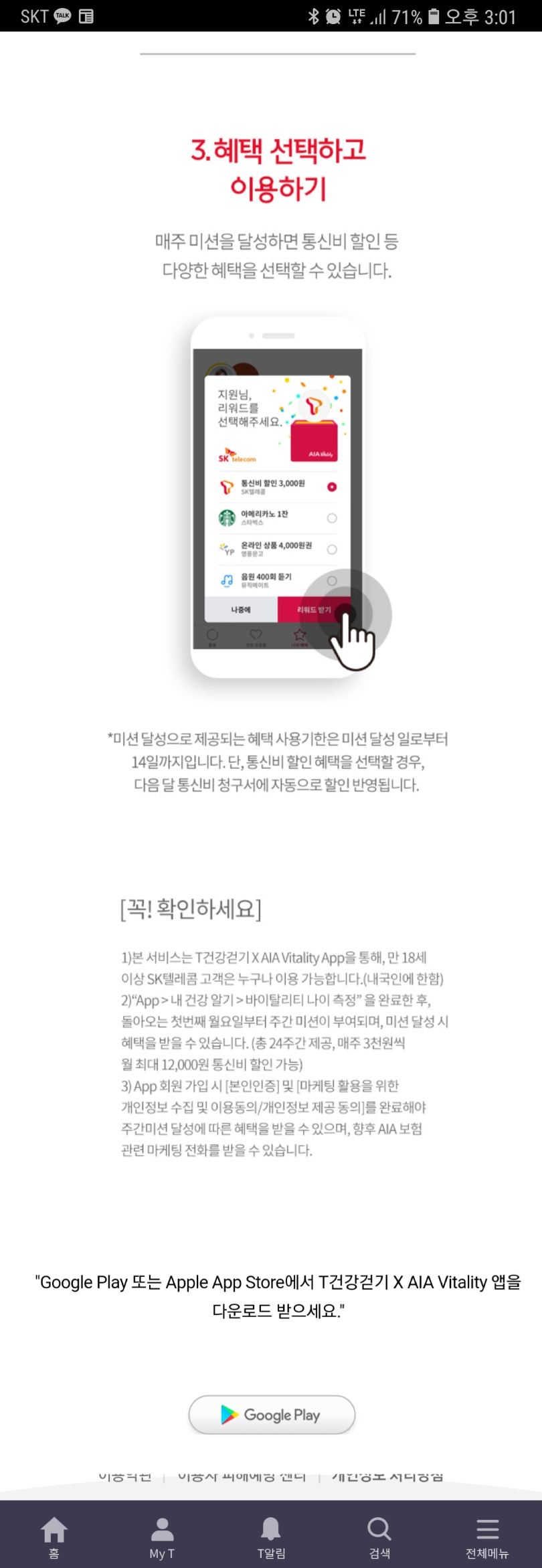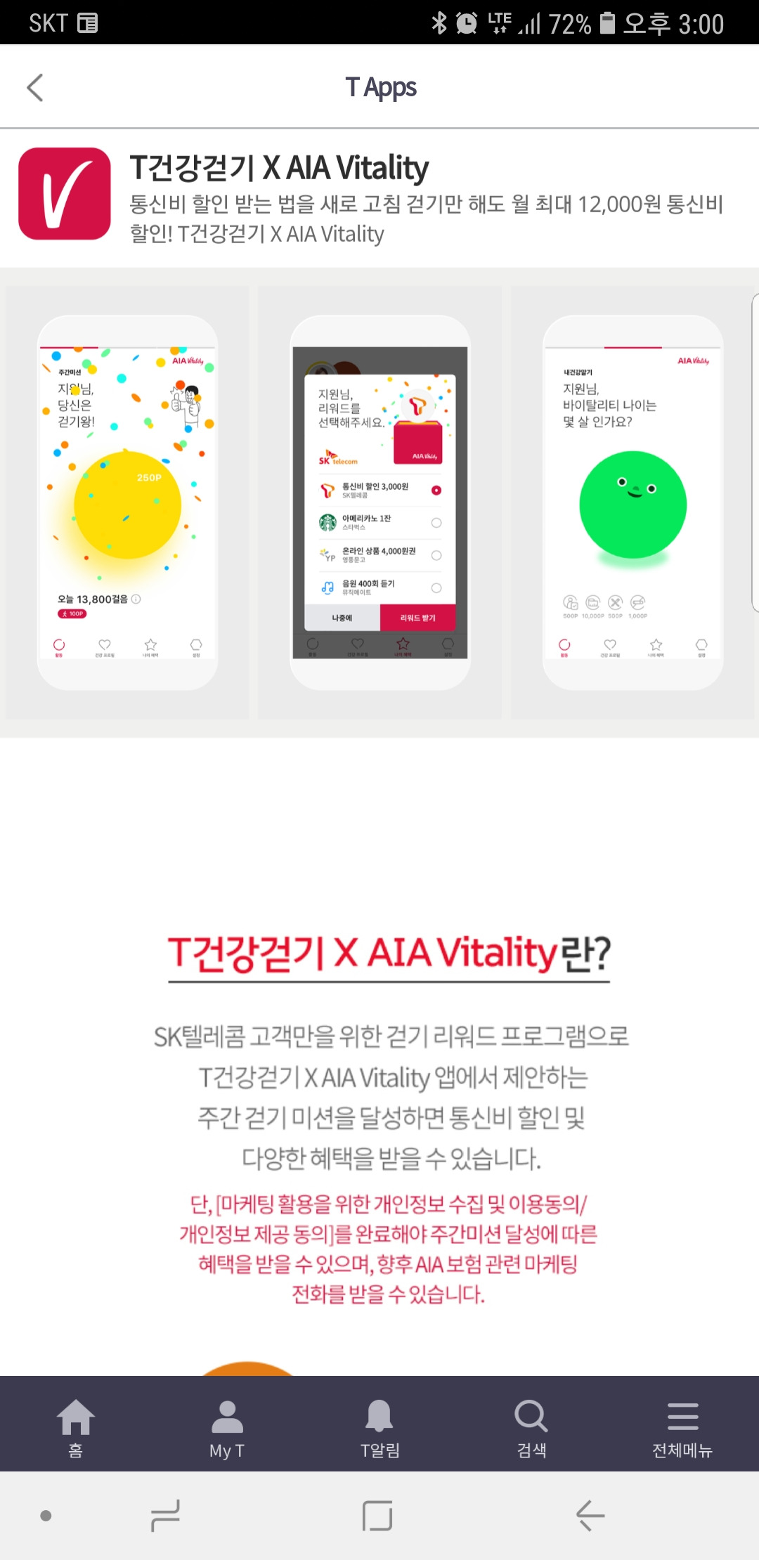 T건강걷기, AIAVitality,통신비할인,모바일앱,걷기리워드,건강