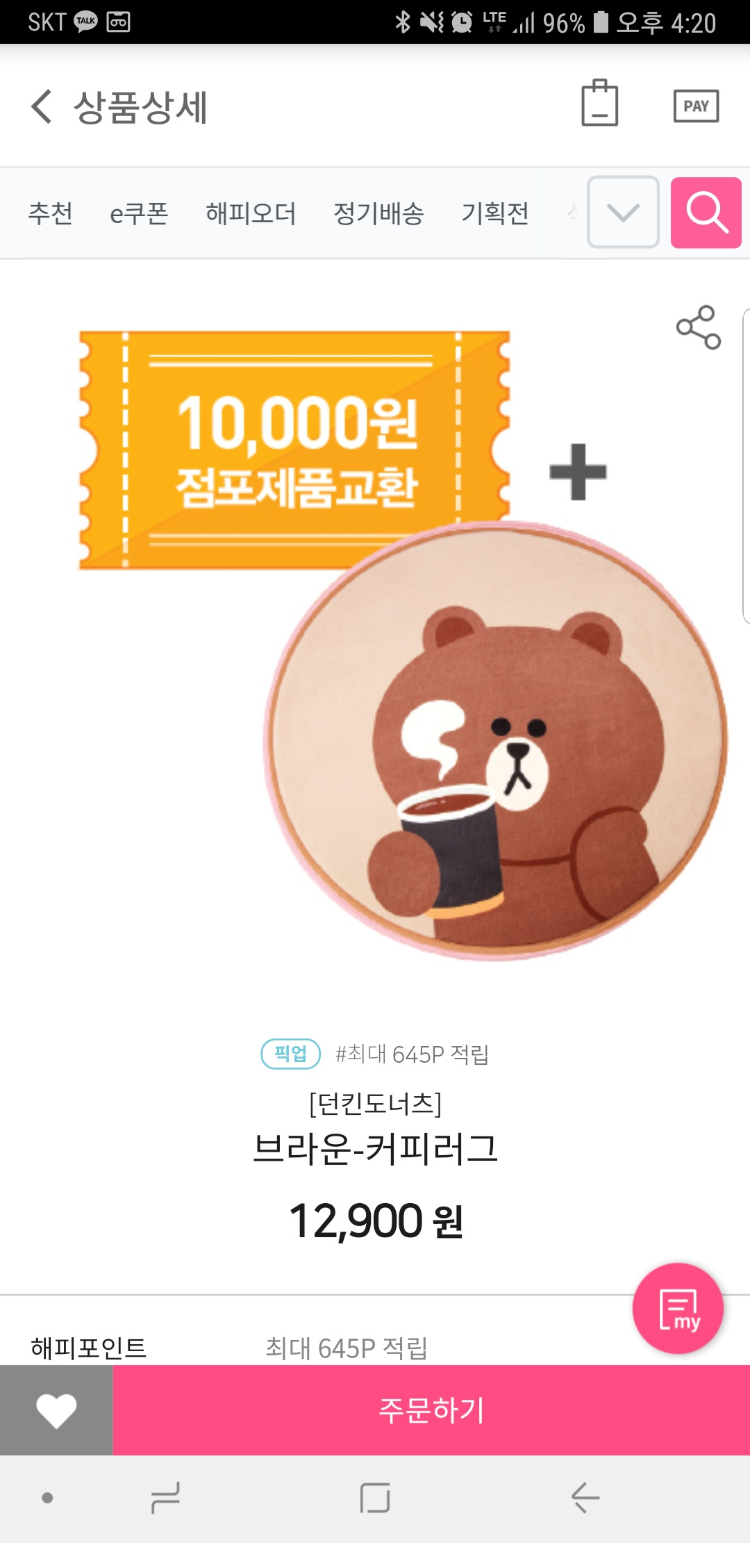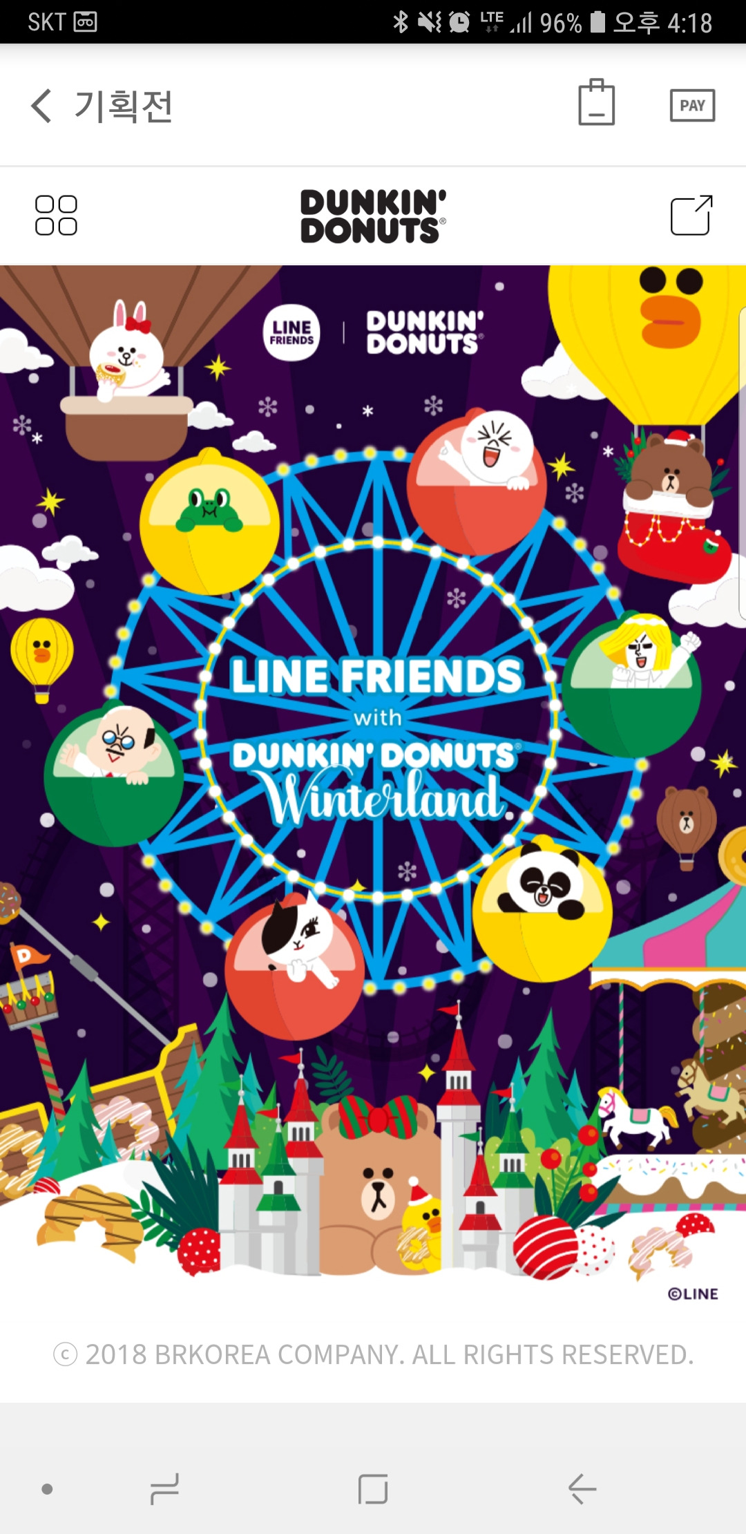 해피포인트앱,해피앱,해피오더,던킨도너츠,라인프렌즈,브라운,커피러그