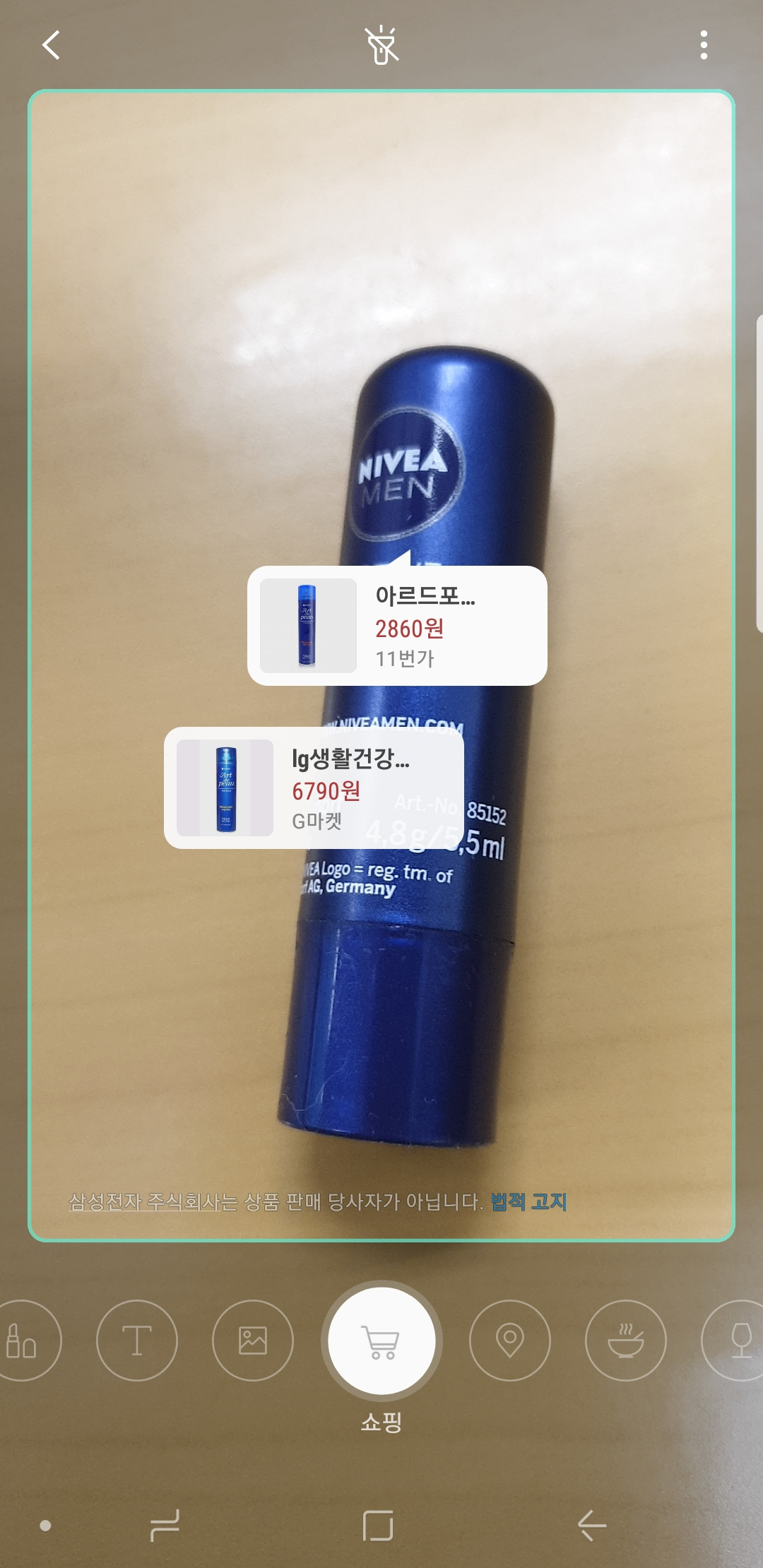 빅스비 비전은 네이버의 스마트렌즈, 쇼팡렌즈와도 유사하다.