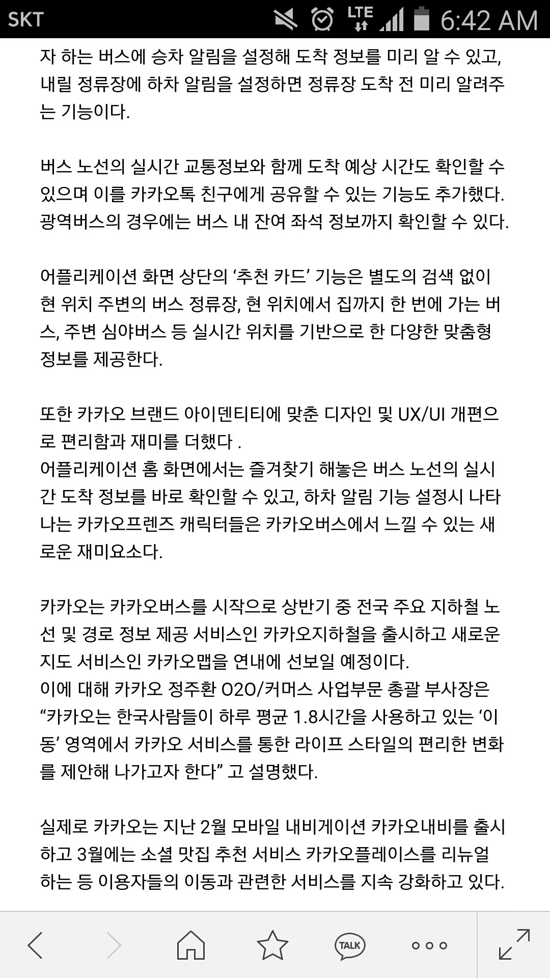 실제로 지하철에서 글을 쓰다 버스를 타기 위해 브런치를 저장히고 카카오버스를 확인해 본다. 최적의 출근을 위해 두 버스 정류장의 버스를 선택해야 하기에 확인은 필수적이다. 아침에 1~2분의 단축은 10분이상이다. 분명 틈새를 메꾸는 것이 사랑받게되눈 서비스일 것이다.