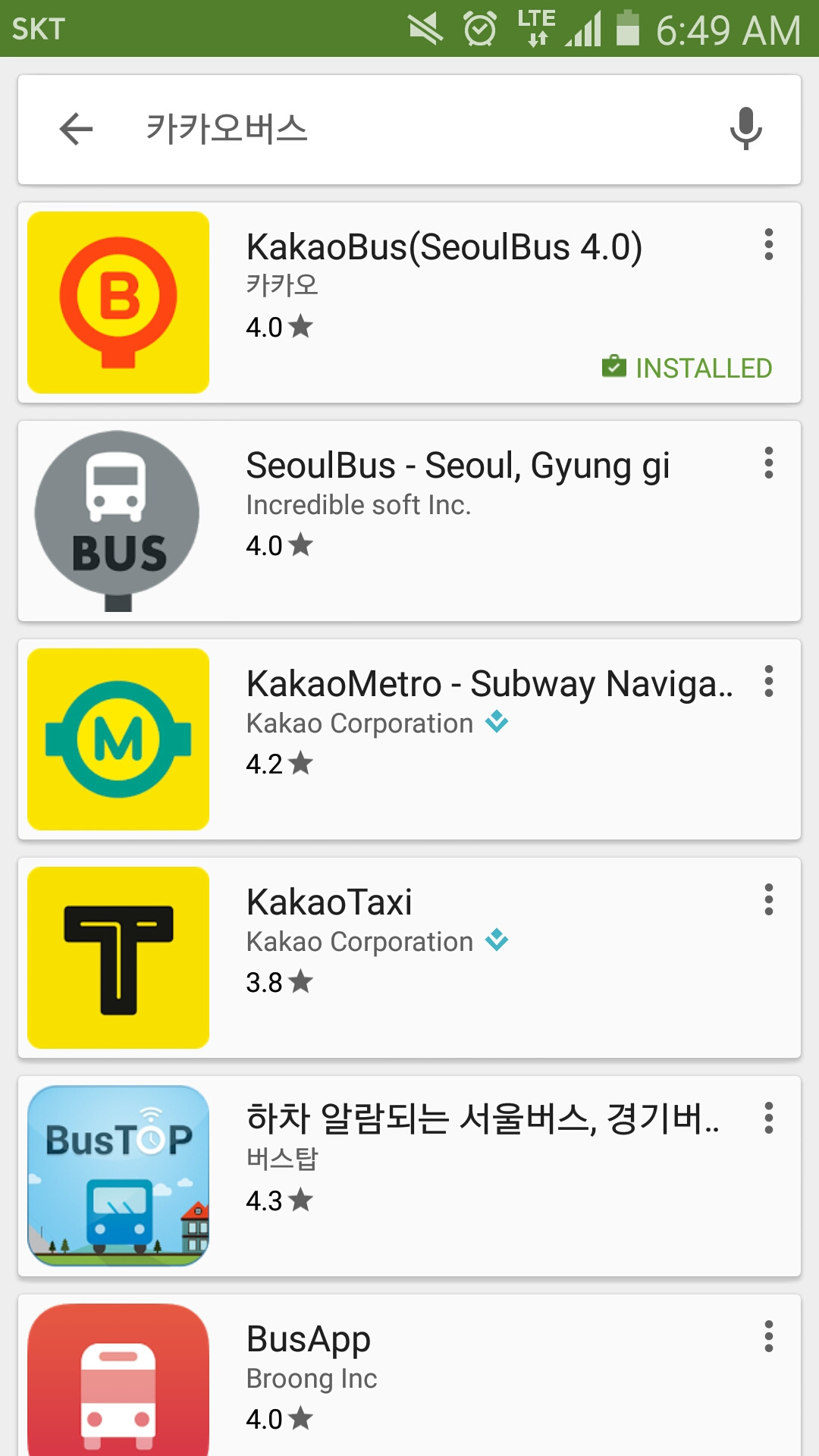 이름하여 서울버스4.0, 내 스마트폰 환경이 영어로 셋팅되어 나는 영어버전 카카오버스라서 조금 다른 미묘한 느낌은 있지만 거의 유사하다. 그래서 다른 폰의 정보와 인터넷을 활용한다.