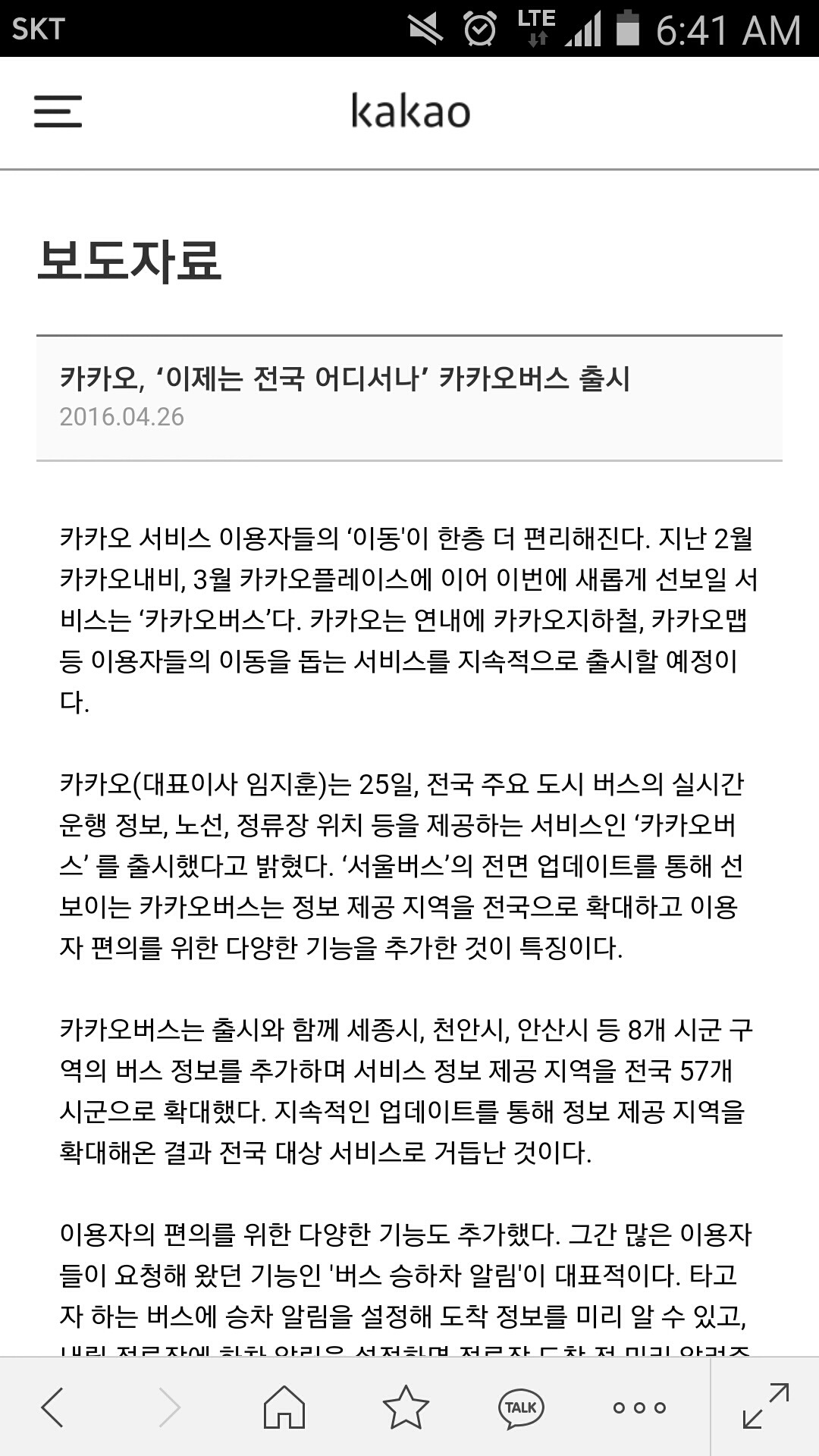 카카오버스에 대한 4/24일자 카카오의 이야기다.
