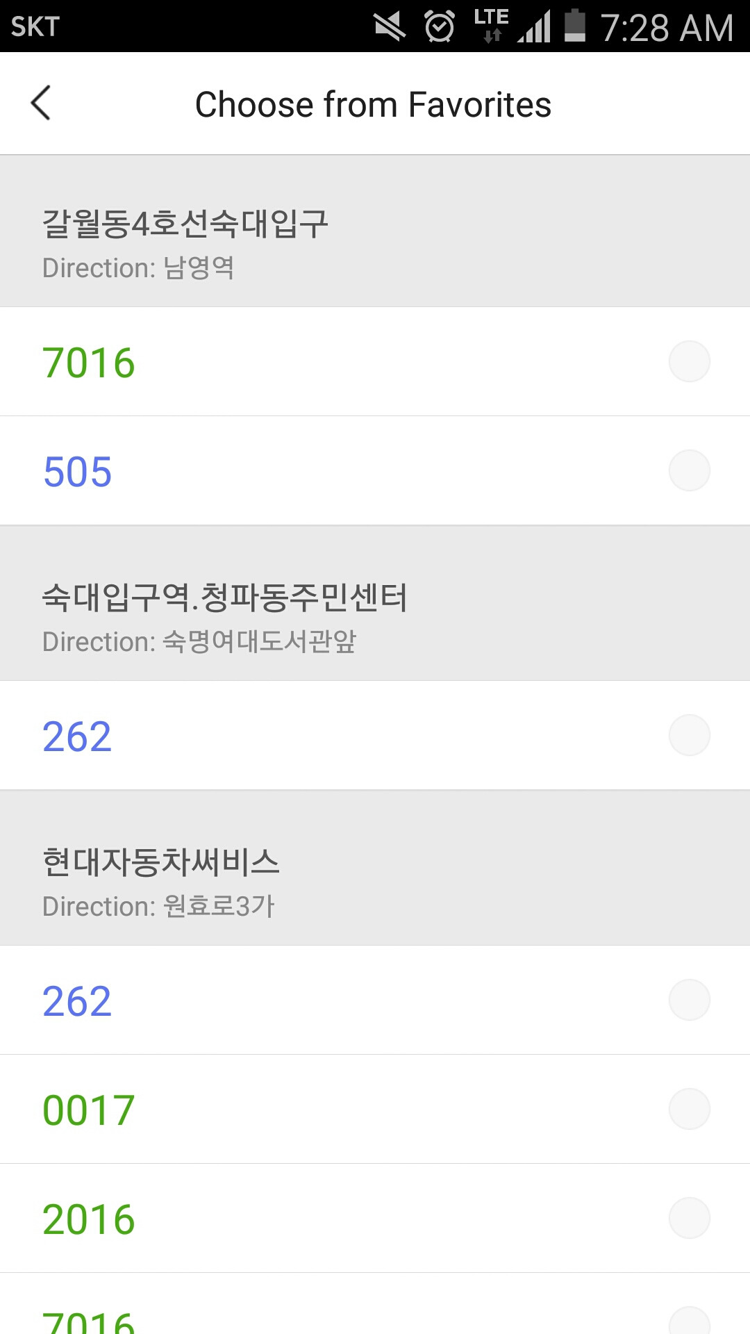 정류장 검색이다. 이런 것은 즐겨찾기를 위해서도 좋다.