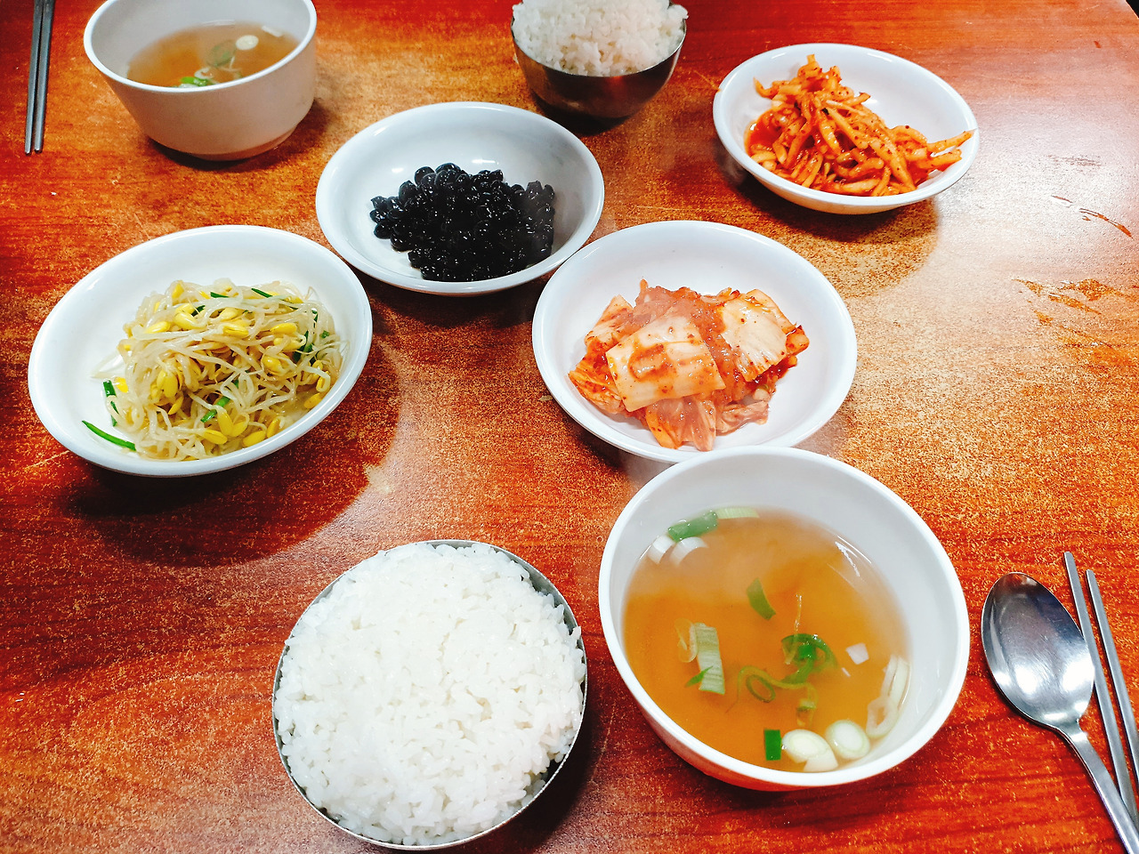 반찬 그리고 밥이 정말 산을 이루고 있다.