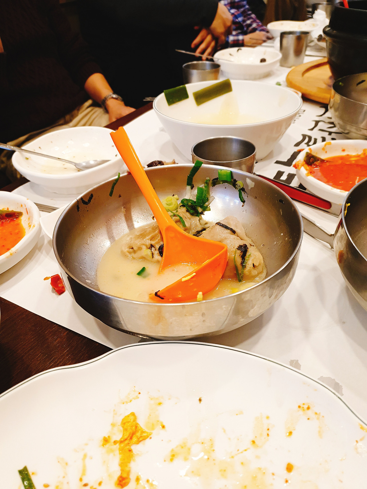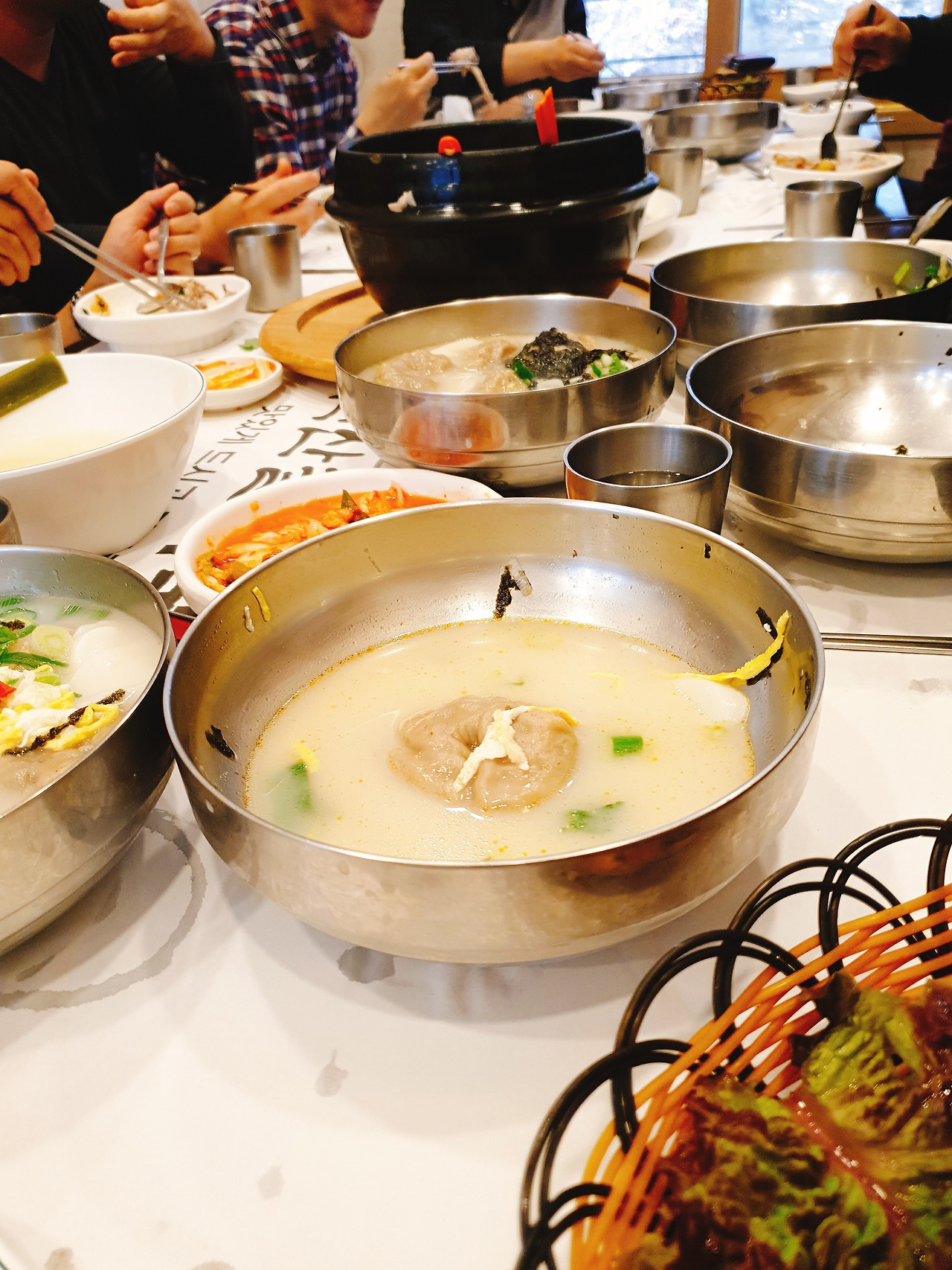 보쌈은 배고파서 어떻게 먹었는지 기억이 안남는다.만두국은 오른쪽이 낫다.