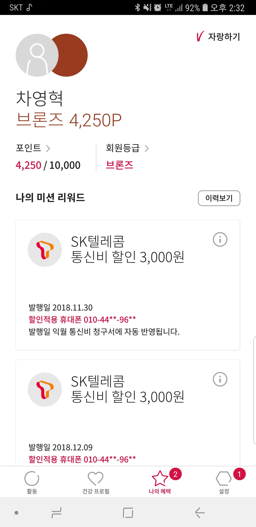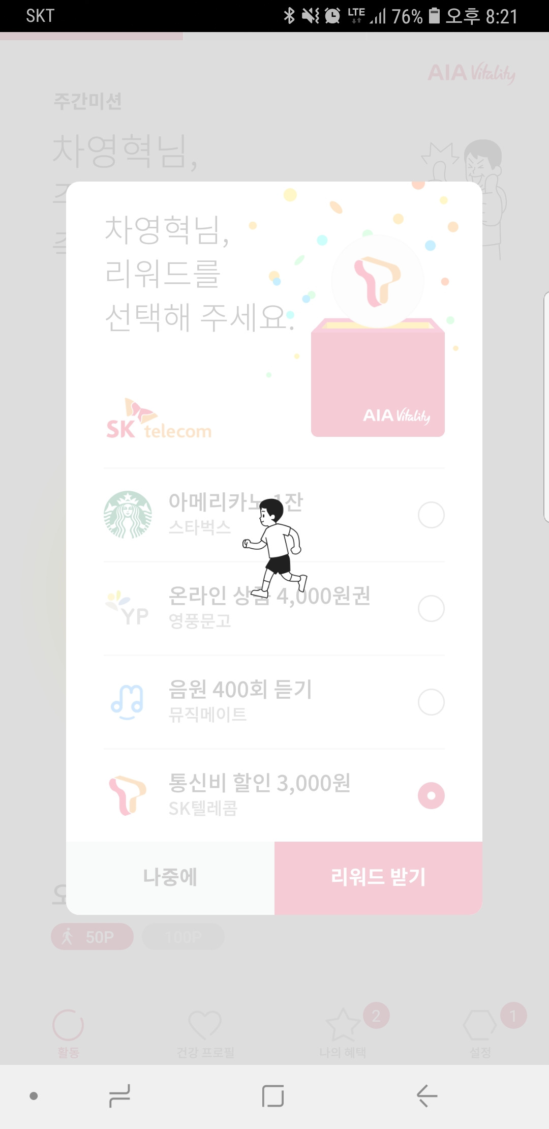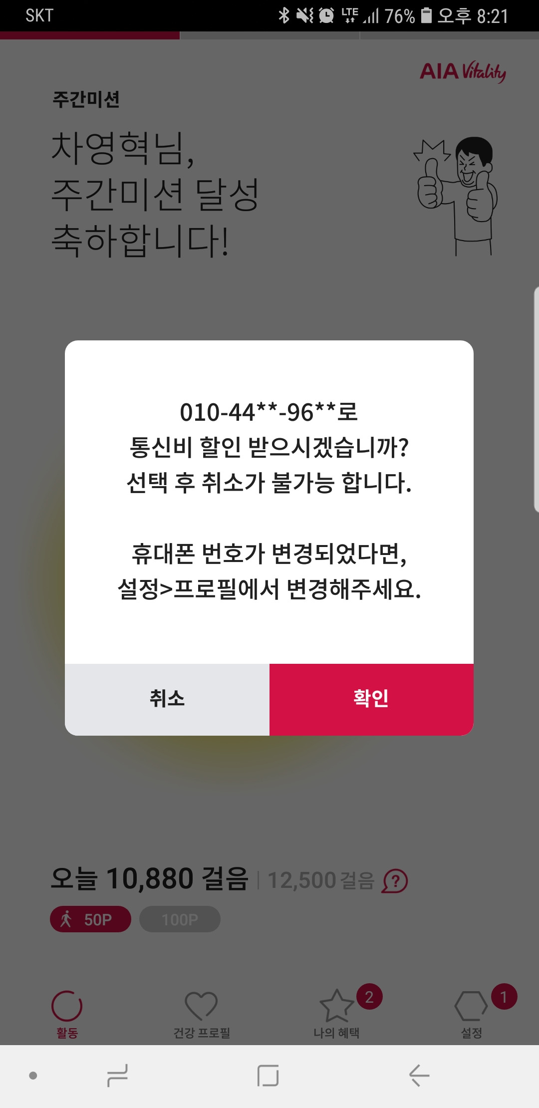 T건강걷기,AIA할인,SK텔레콤,SKT,통신비,12,000원할인