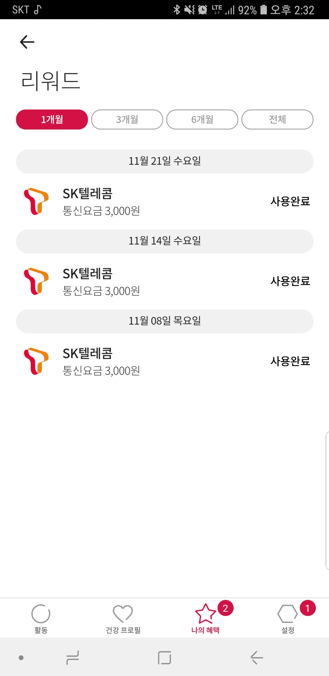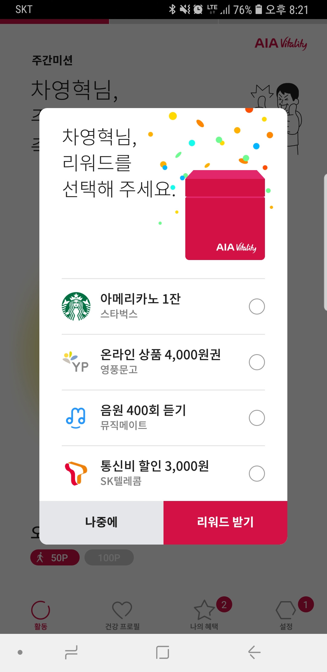 T건강걷기 앱을 깔고 매주 걸음을 달성했더만, 혜택이 자글 자글하다.