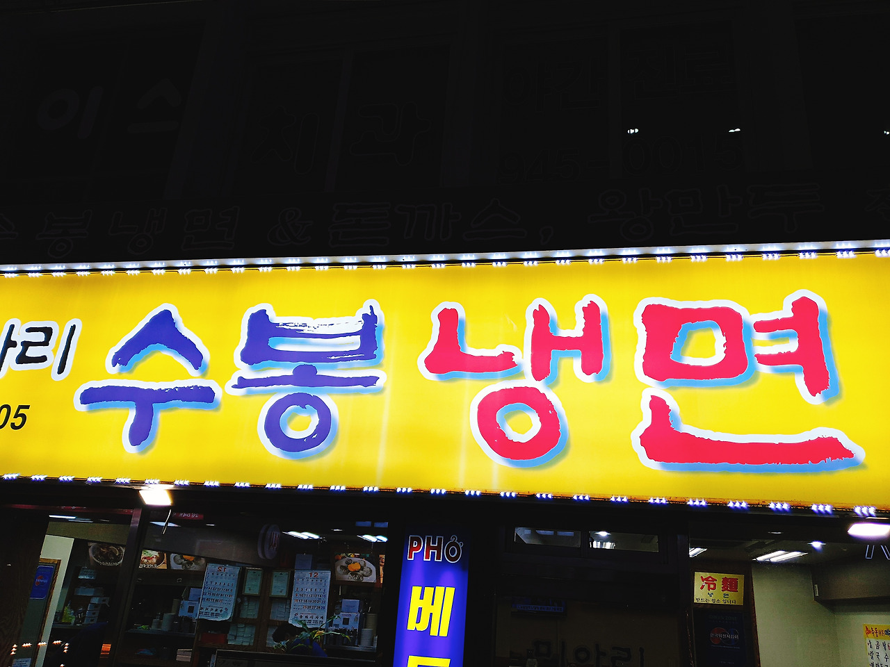 어찌 어찌 냉면이야기가 나외서 원래는 냉면 전문집으로 가려다가 다양하게 먹을 수 있는 수봉냉면을 찾았다.
