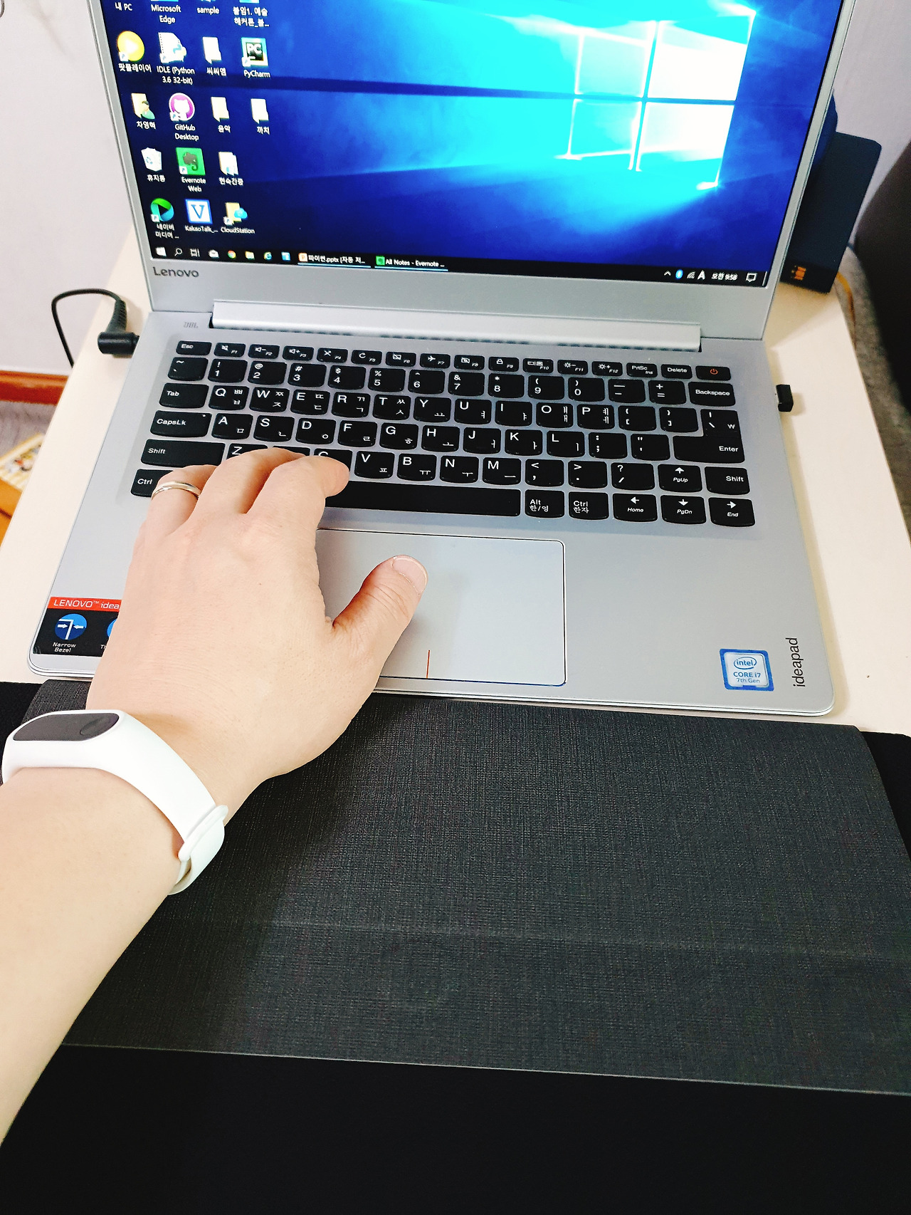 팔목을 부담없이 거치하고 마우스릉 자유롭게, 역으로 돌리면 태블랏 모드인 것이다.