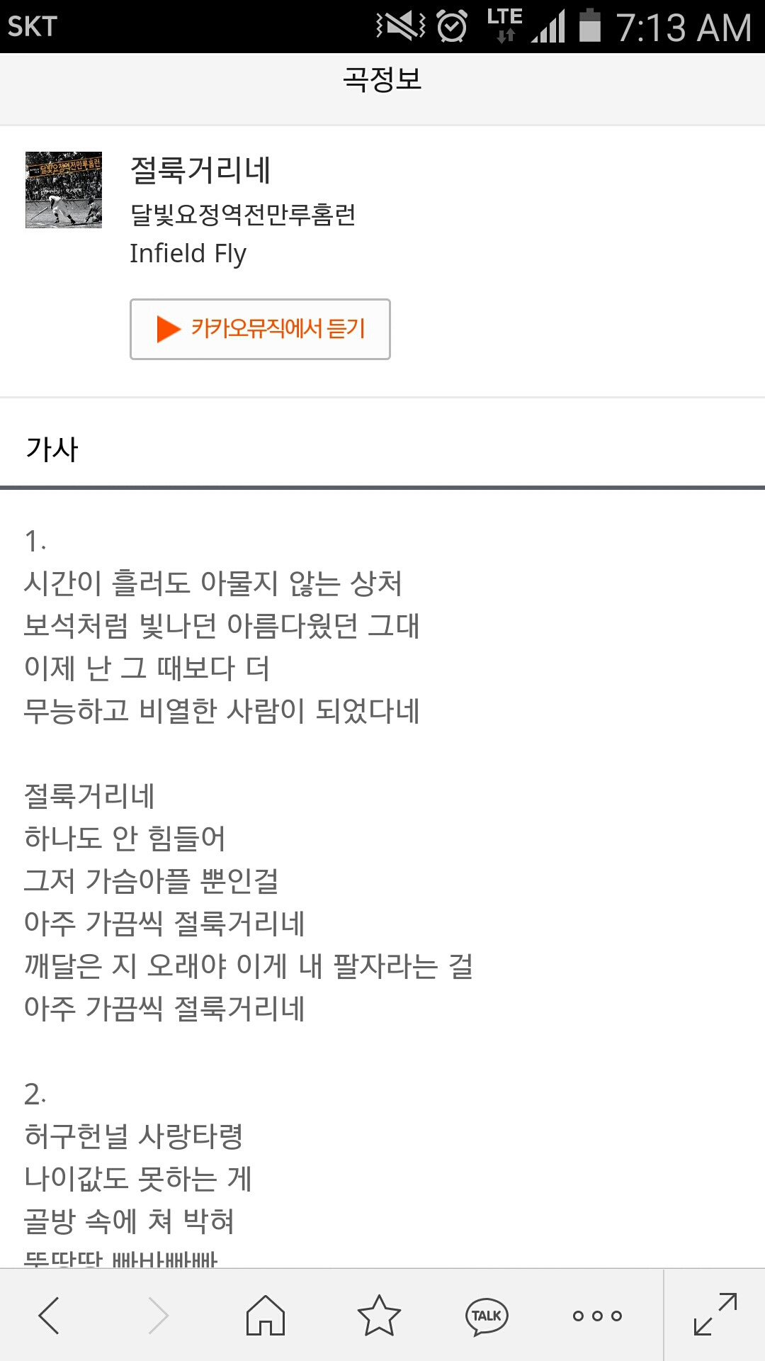 쩔뚝거리는 나의 모습에서, 달빛요정역전만루홈런의 "절룩거리네"가 생각난다.