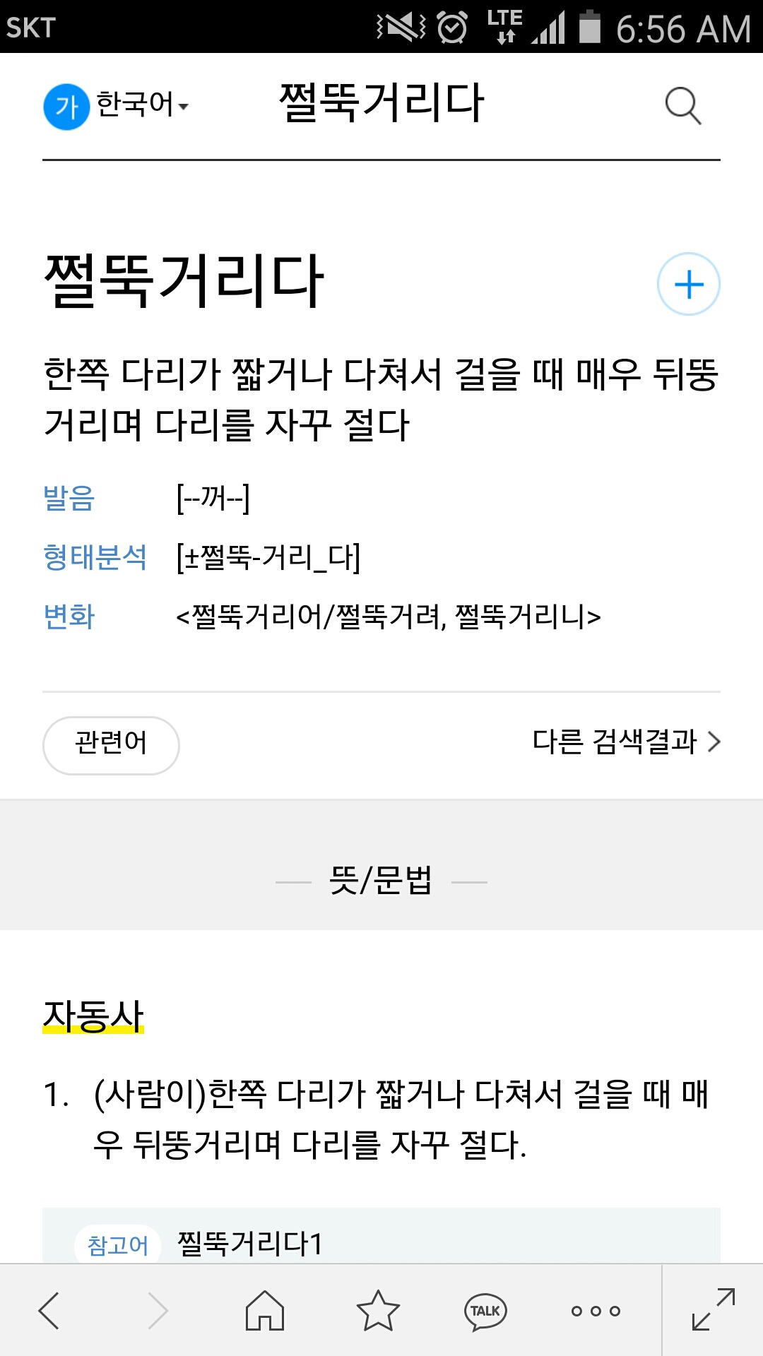 쩔뚝거리다, 절룩거리네.