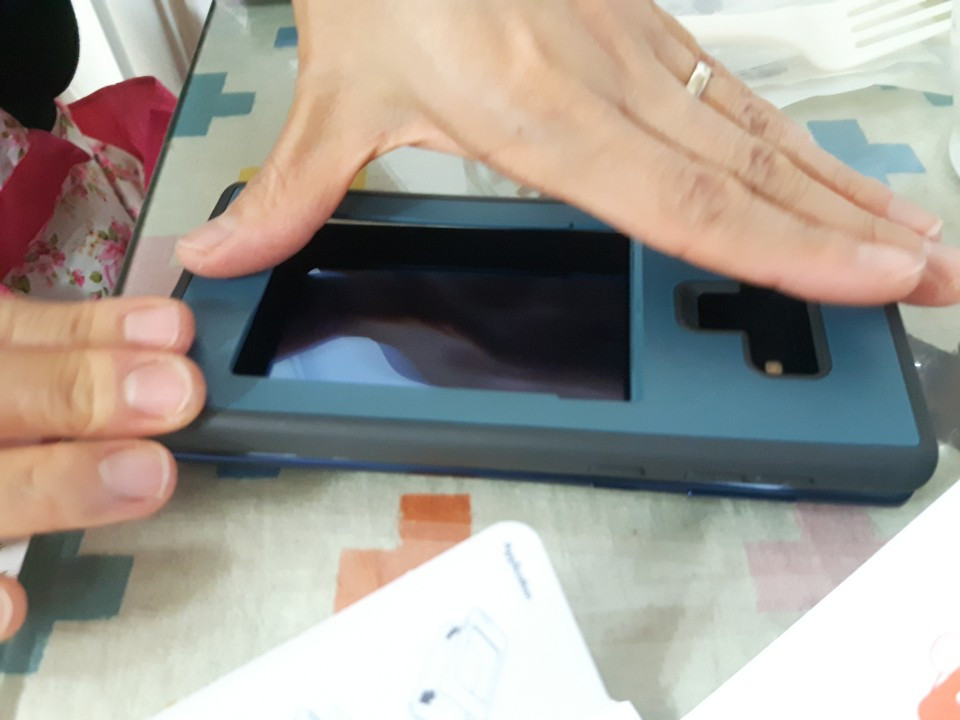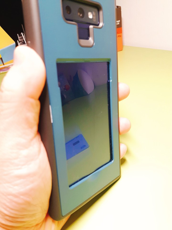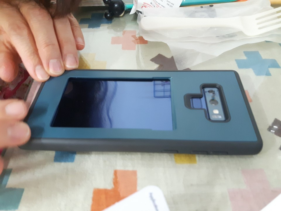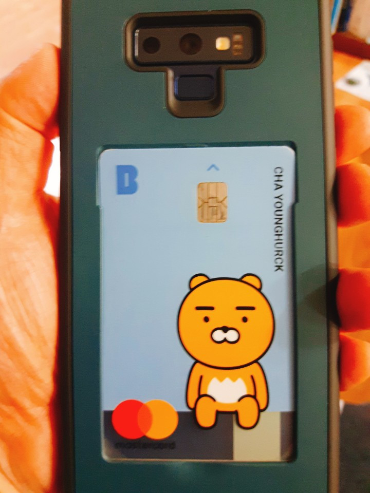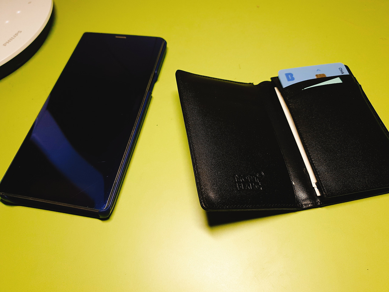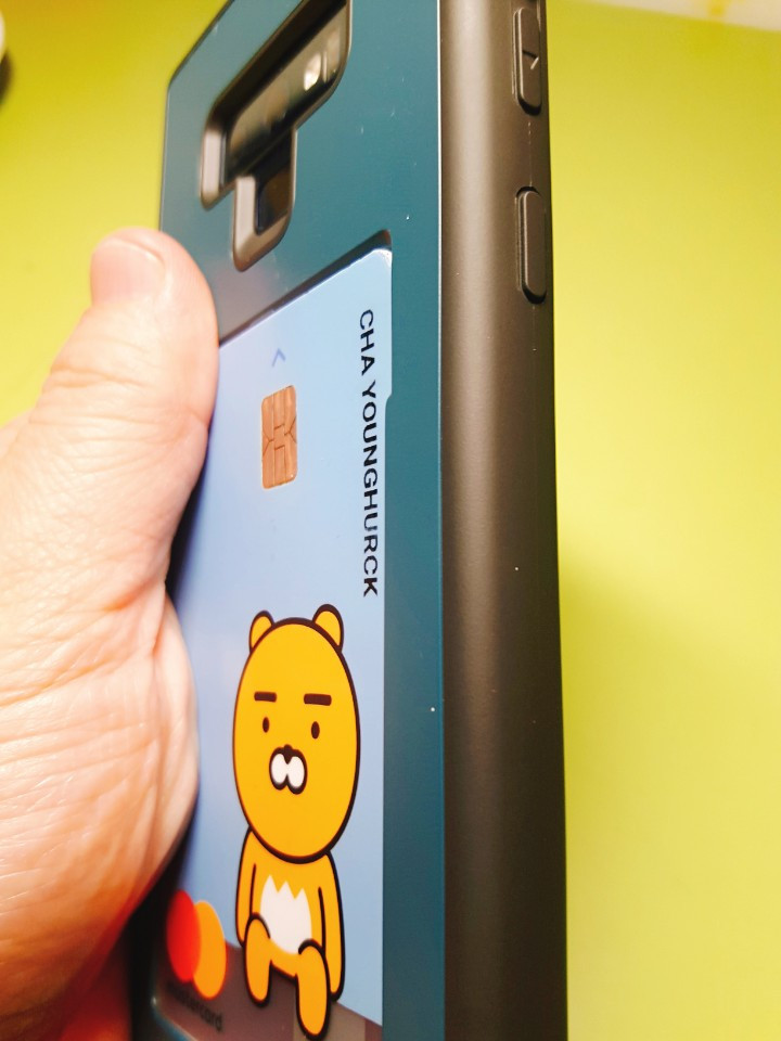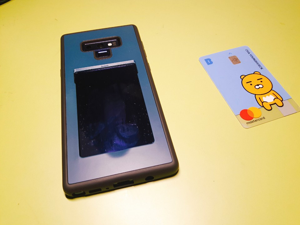 갤노트9 자체가 길고 무게가 조금 있는 것도 사실이지만 뒷면에 카드를 손쉽게 보관할 수 있어서 좋다. 사용 접근성이 좋다. 바로 밀어서 쓰면 되기에..