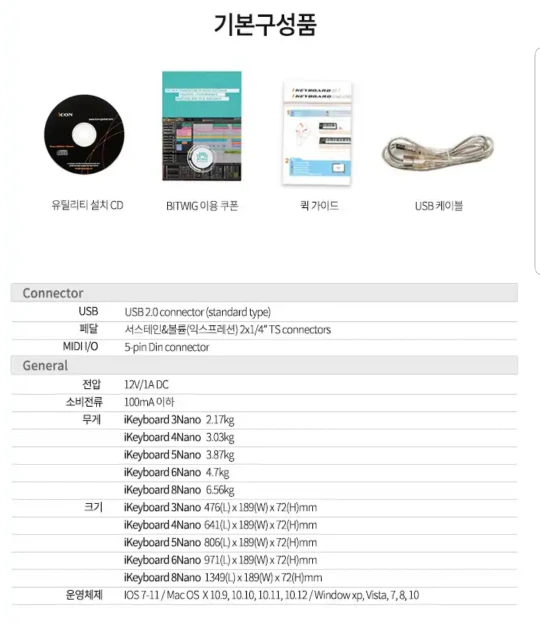 아이콘 키보드, 건반 길이에 따라 선택 가능해서 팔색조다.