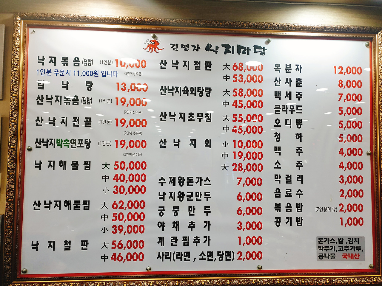 의왕역,김명자낙지마당,산낙지해물찜,산낙지