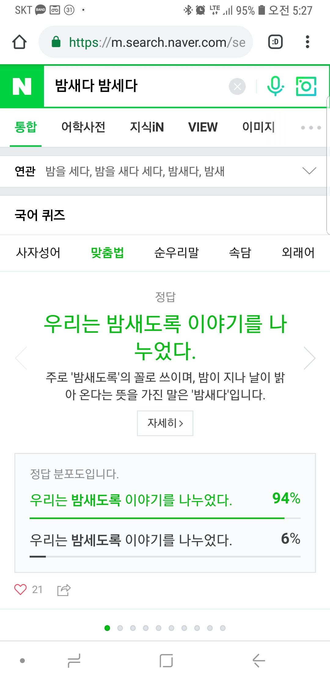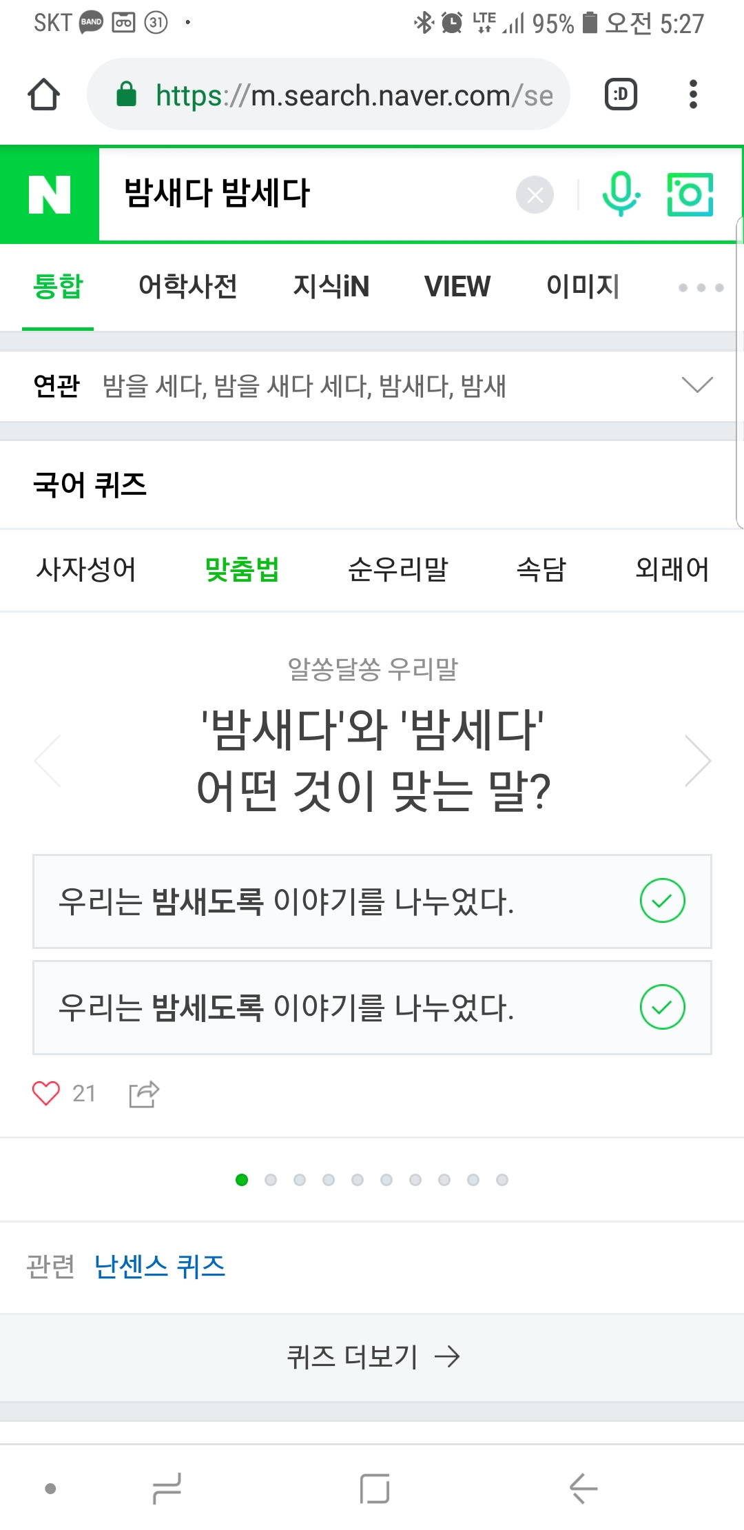밤새다와 밤세다. 가장 자주 틀리는 단어