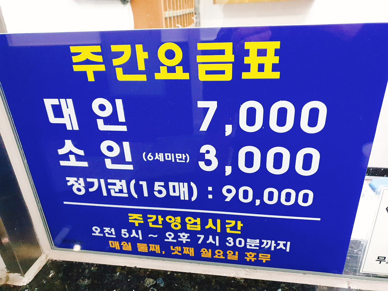 사우나, 목욕탕 가격이 현재 18년 12월 기준으로 7,000원이다.