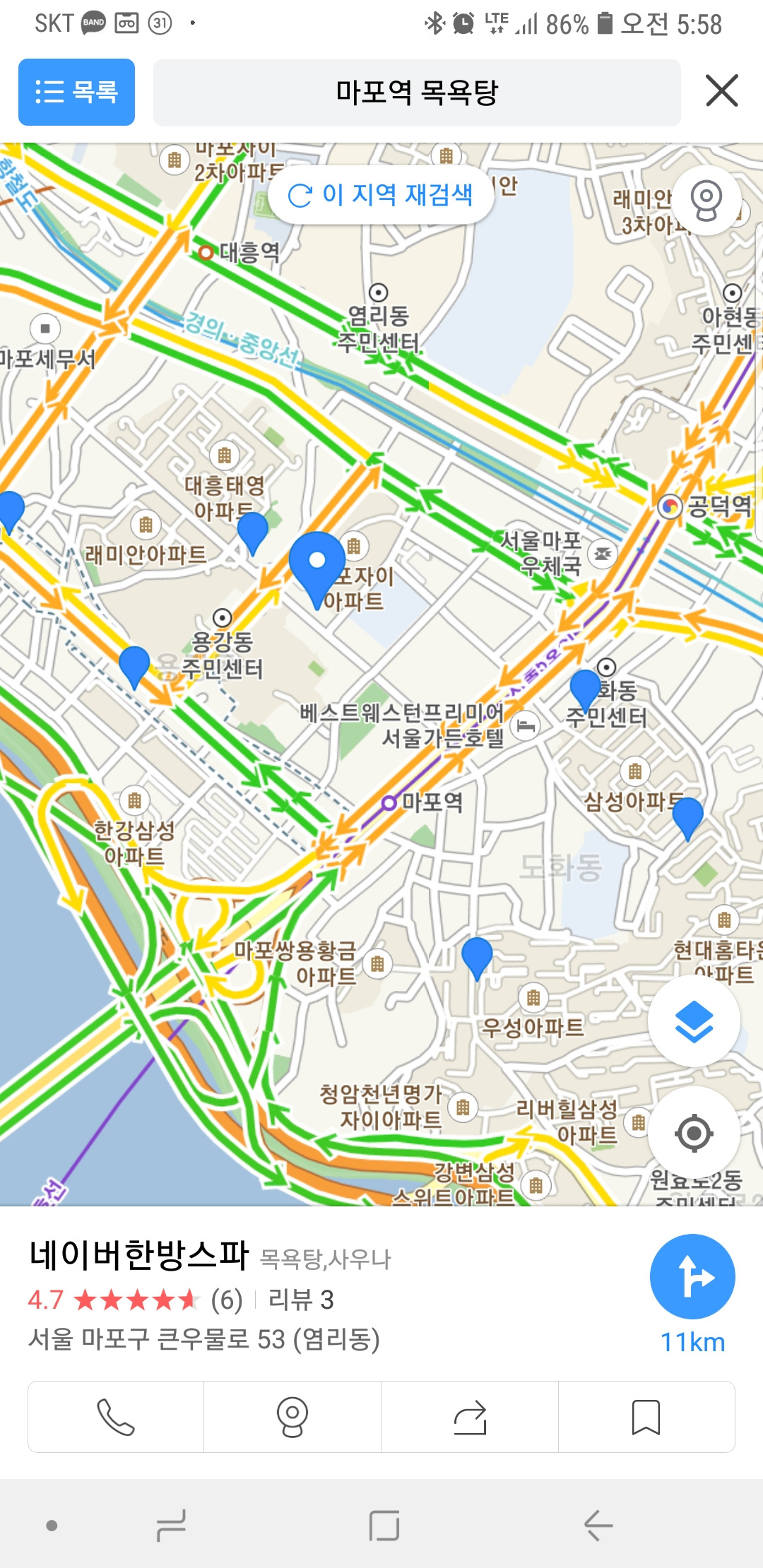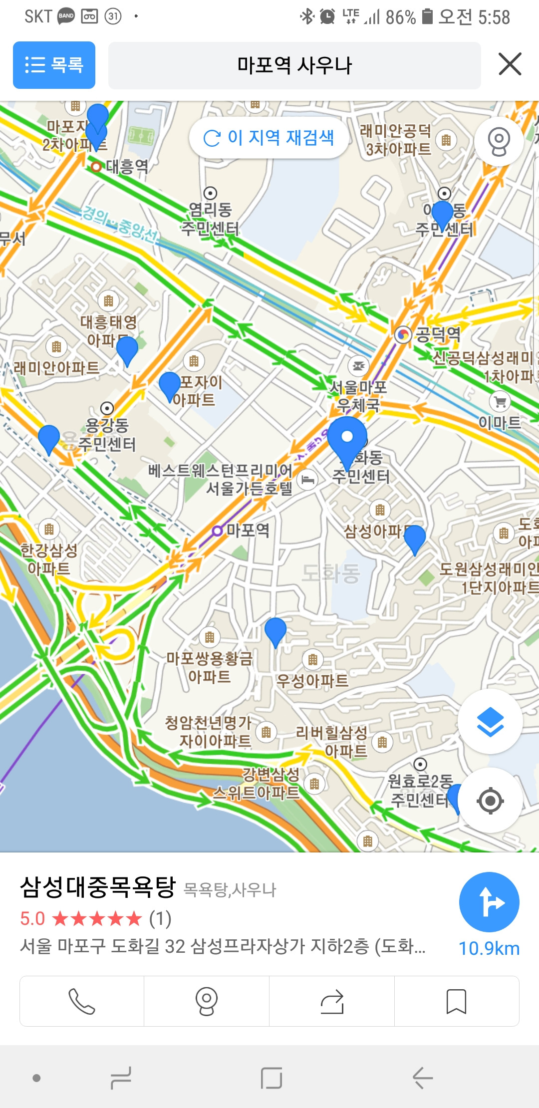 마포역 사우나/목욕탕로 카카오맵에서 검색