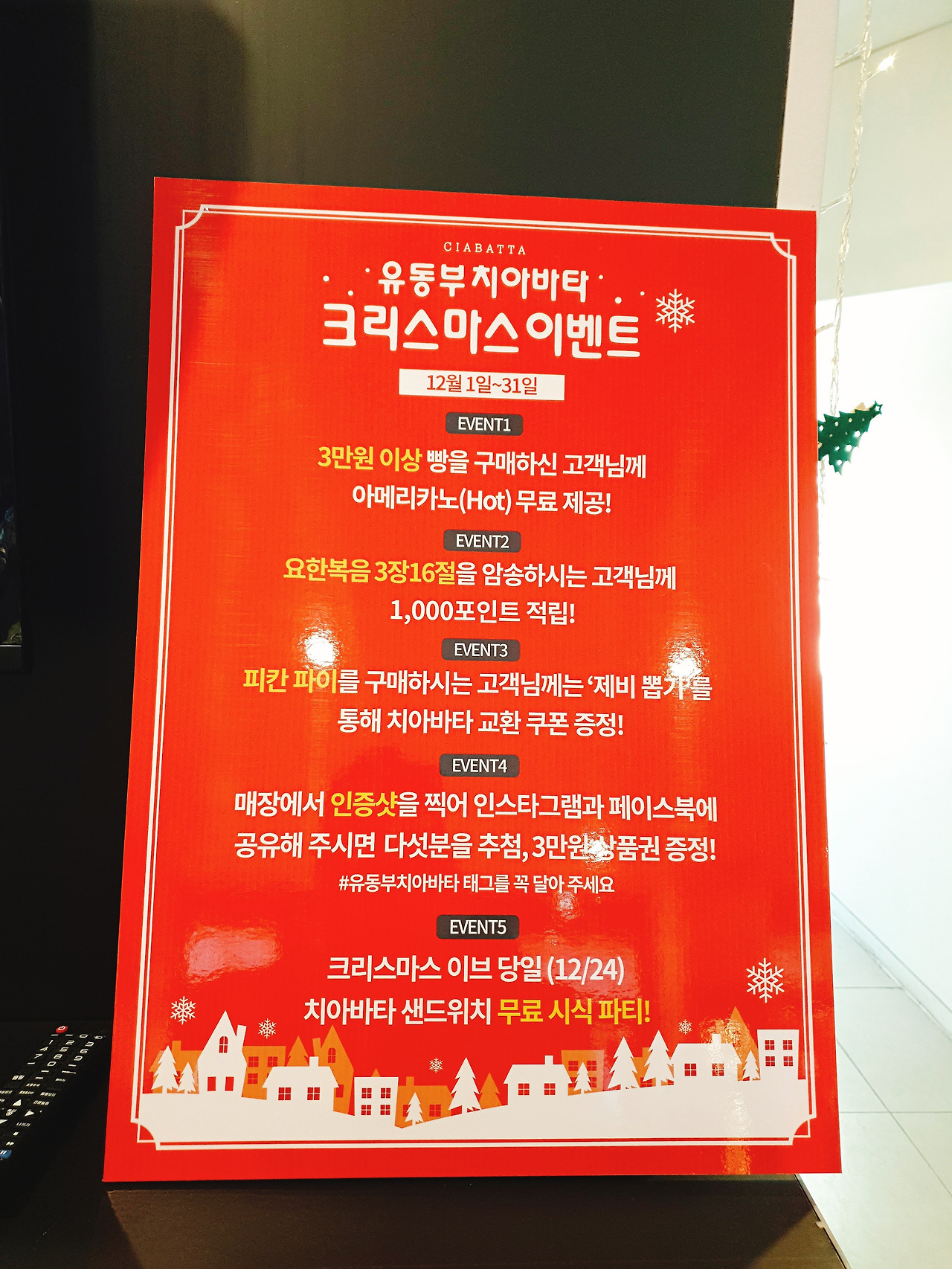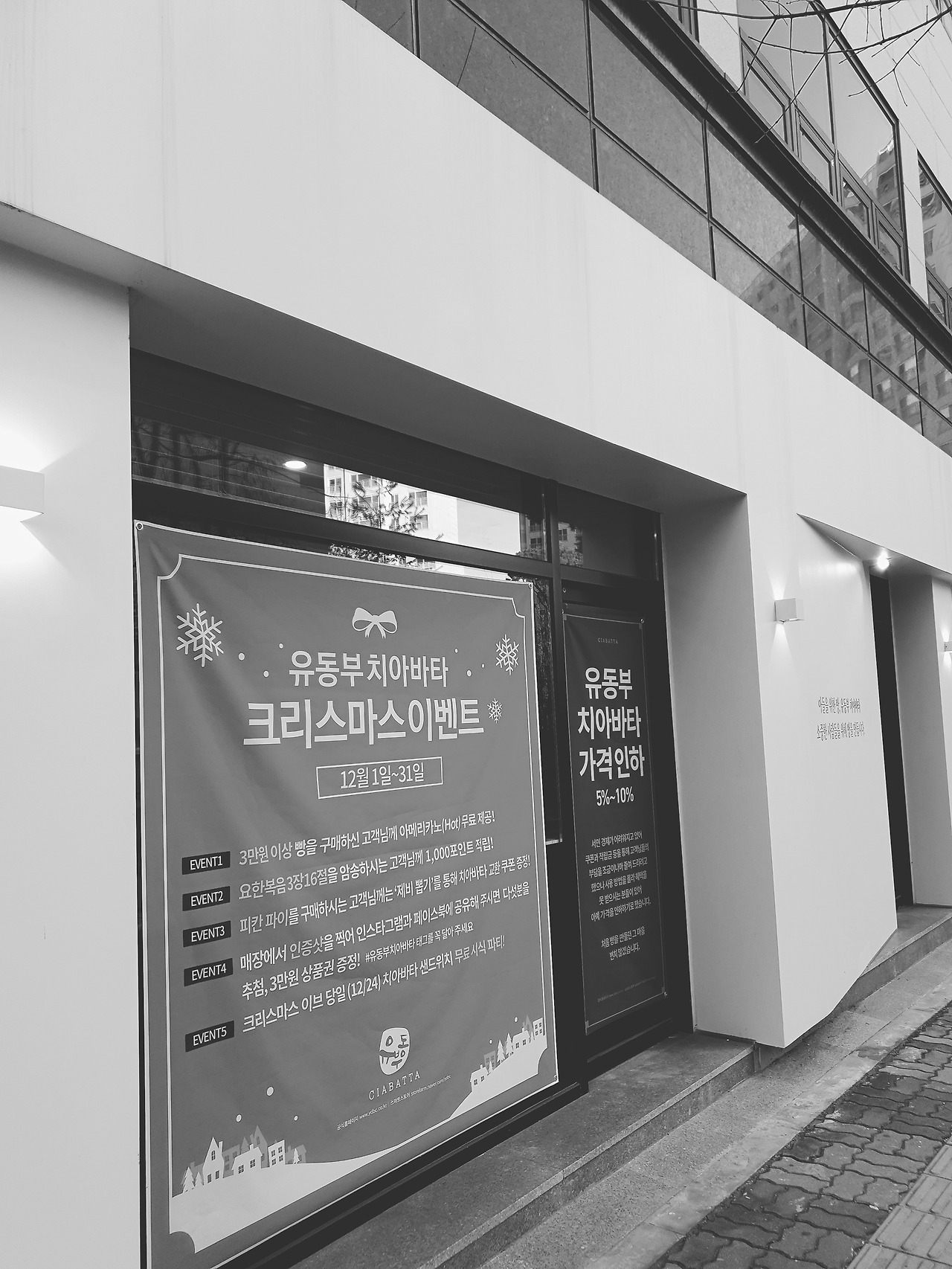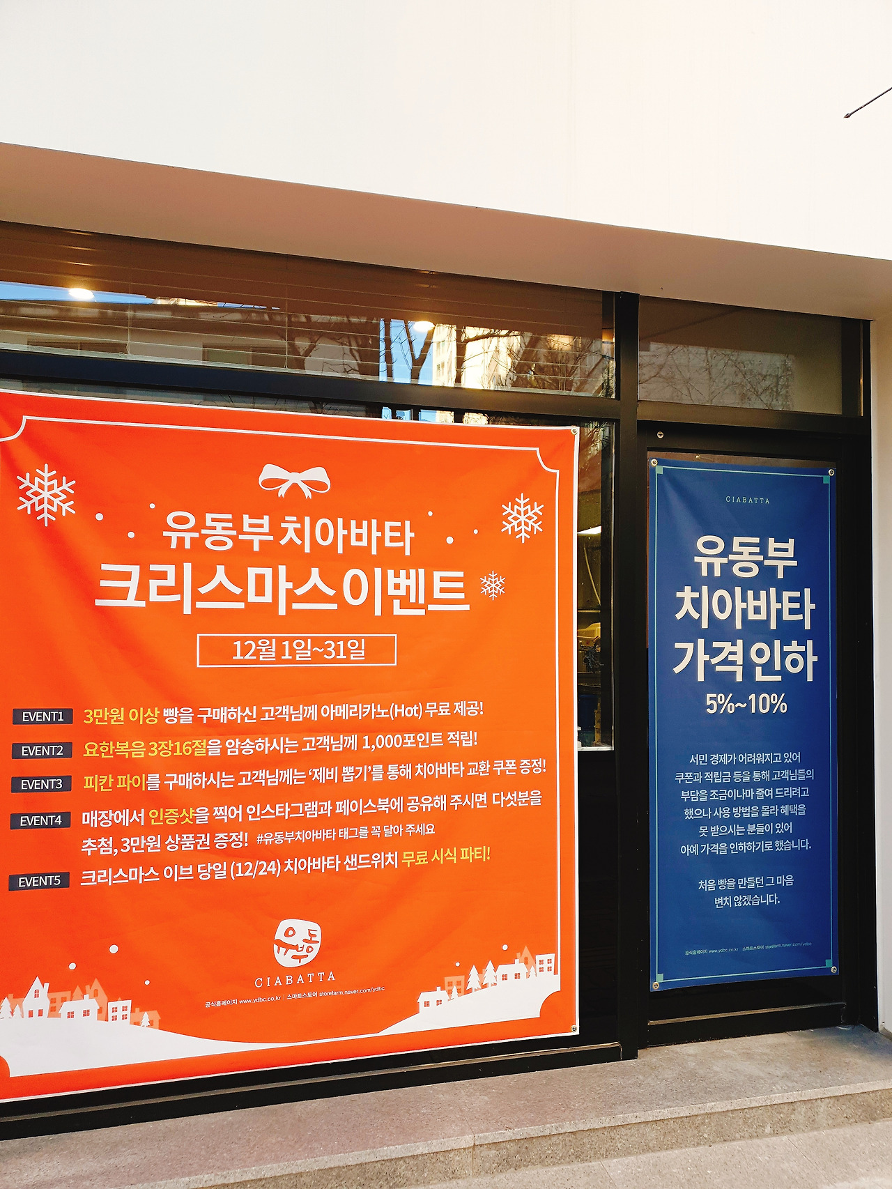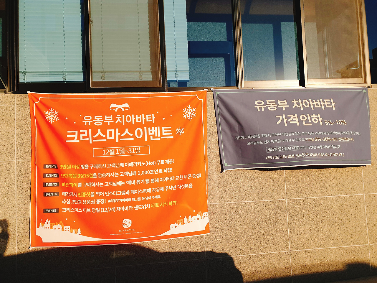 크리스마스이벤트와 가격인하가 현수막이 인상적이다.