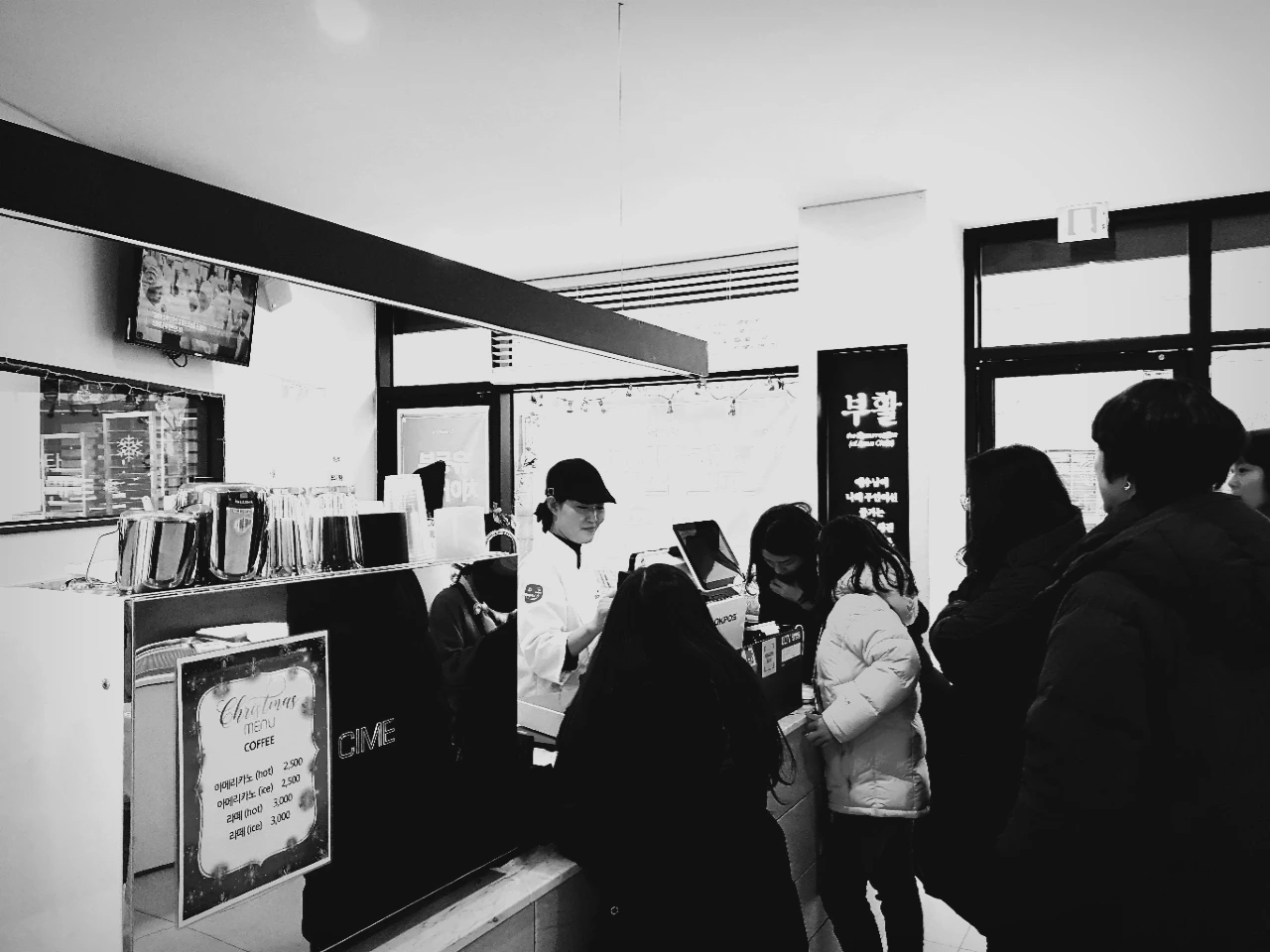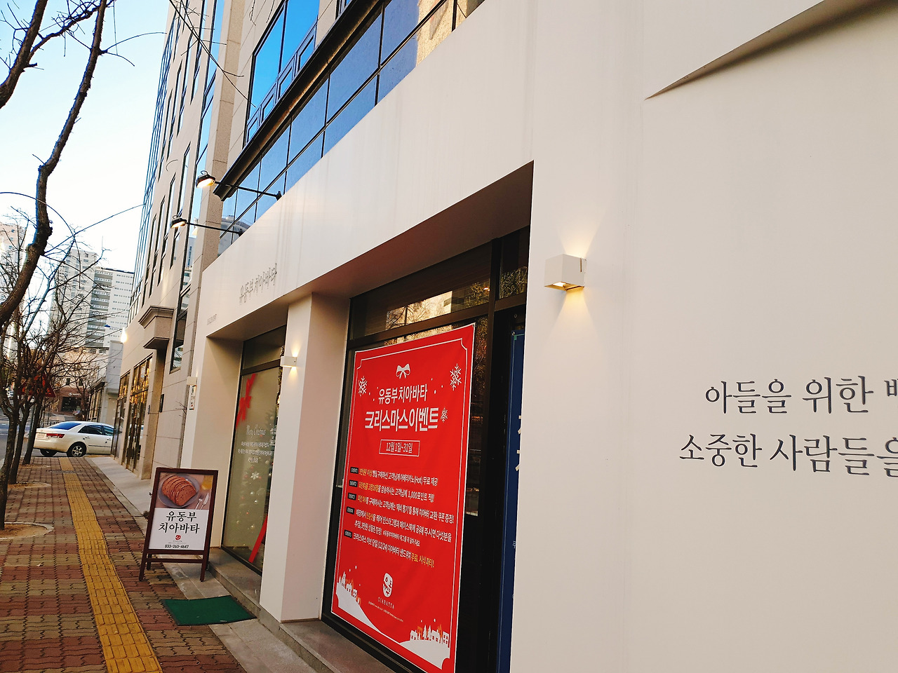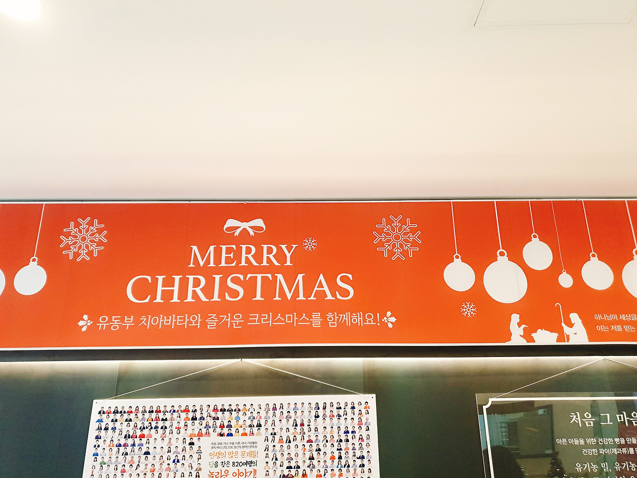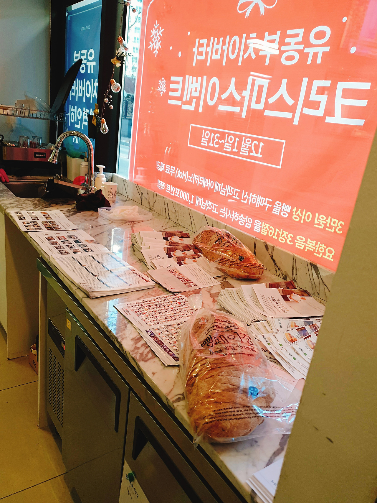 크리스마스이벤트와 가격인하가 현수막이 인상적이다.