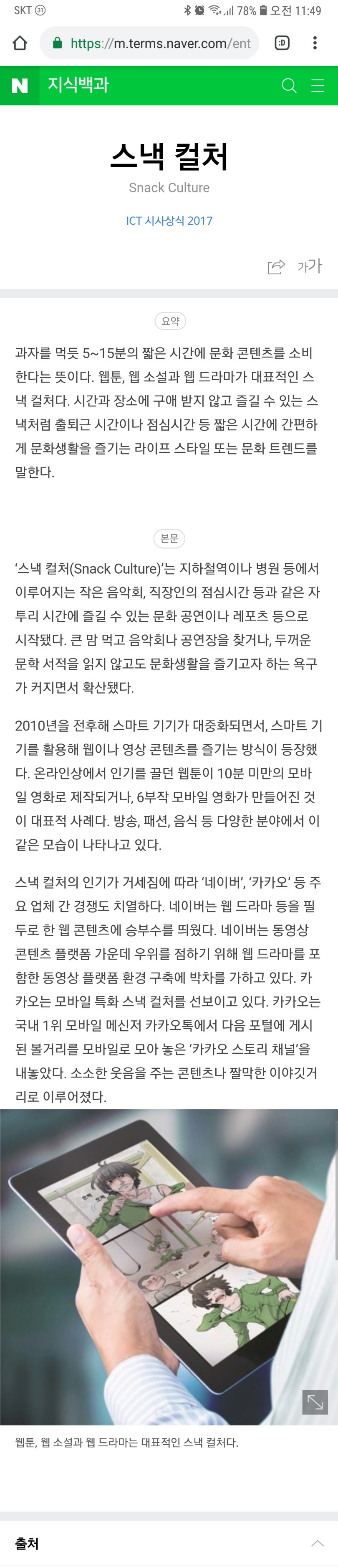 5분에서 15분내에 소비할 수 있는 컨텐츠 보통은 웹툰이나 짧은 동영상으로 갈음된다.