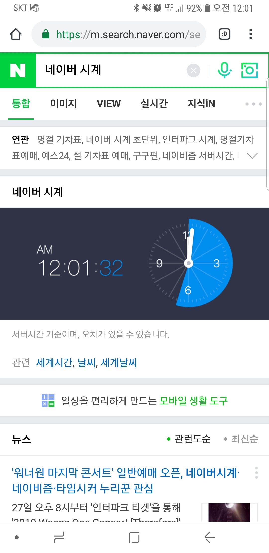 네이버 시계, 12:01 2019년
