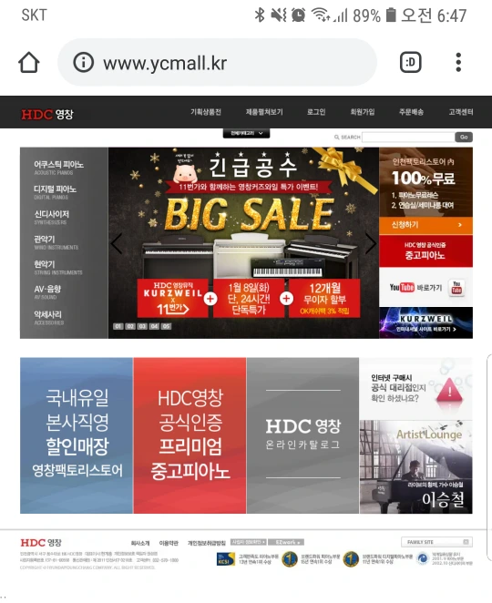 1월8일 화요일 11번가 영창 커즈와일 다지털피아노 행사에 대한 내용이다.