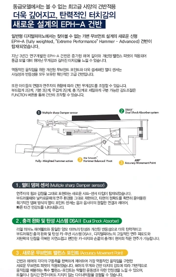 최첨단 신설계가 적용된 완전히 새로운 신형 그랜드 타입 건반, 막강한 퍼퍼먼스의 학습기능을 모드 담은
