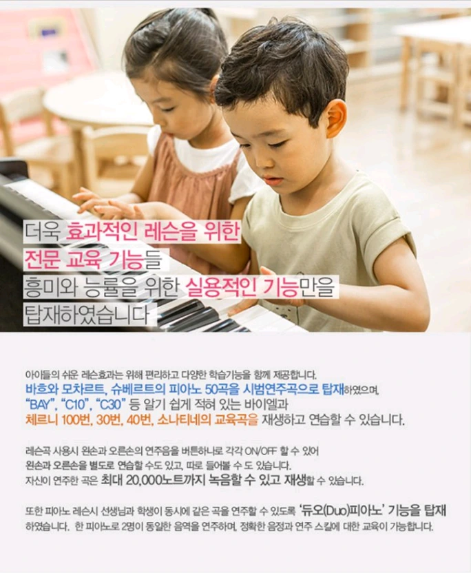 레슨 기능 : 시범연주곡,바이앨,체르니, 소나티네 교육곡