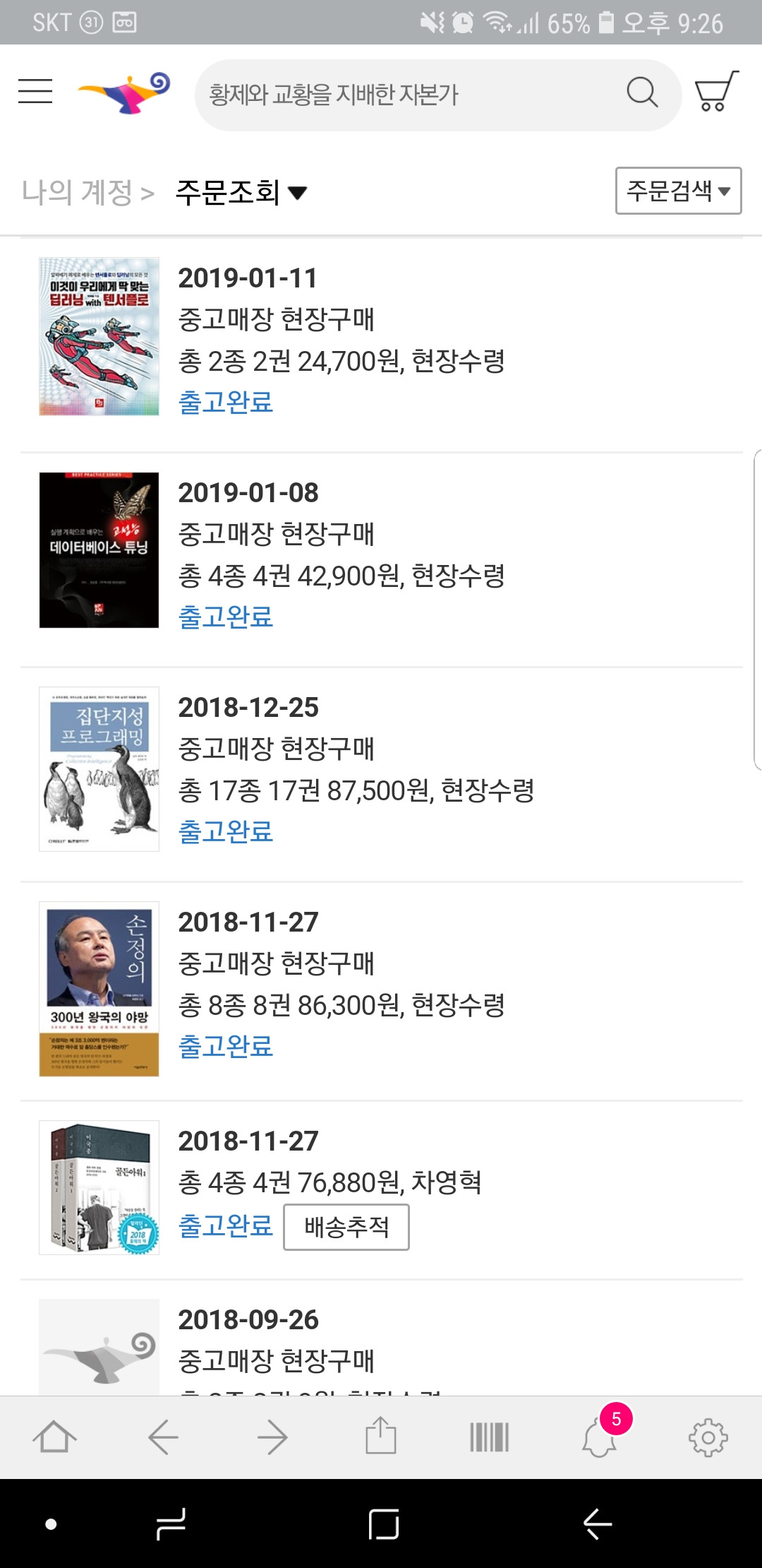 . 온라인으로 모바일로 나의 구매 이력도 9할이 온라인이다. 이제는 서점을 간다는 개념이 없어졌다. 온라인도 국내냐 해외냐 이러고 있다. 책도 종이냐 파일이냐 의견이 분분하다.