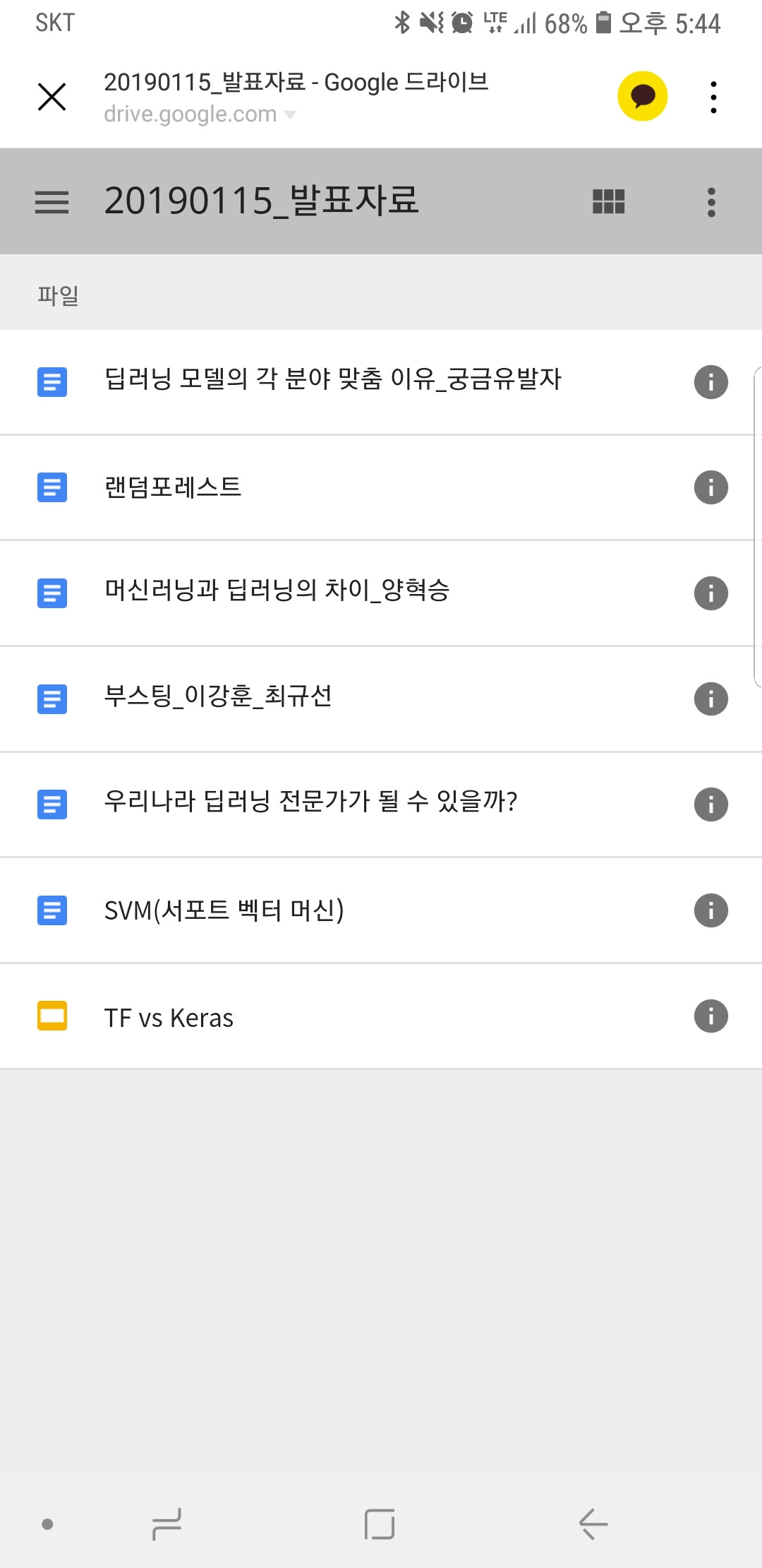 한주간의 고민들 궁금한 점들을 스스로 찾고 바로 발표준비가 되었다.