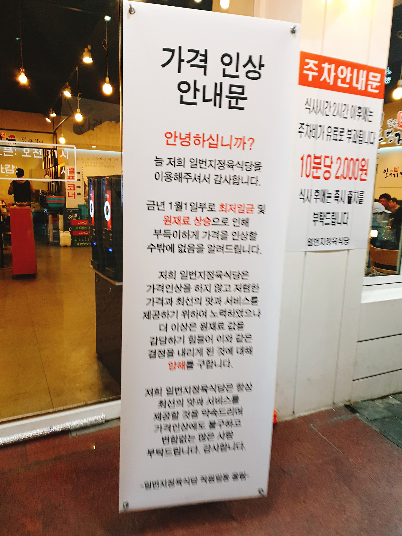 가력인상 안내문
