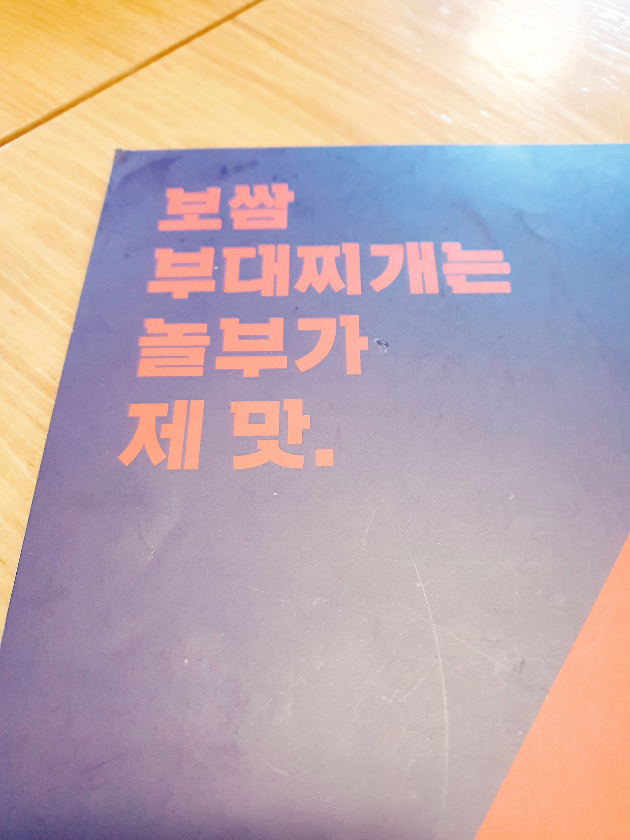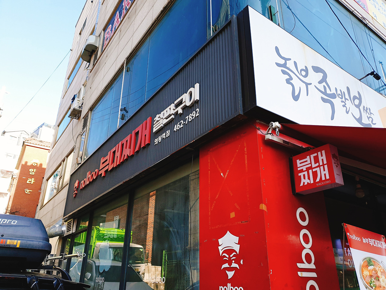 본사 복귀다. 그래서 점심은 바깥에서 그리고 무난한 부대찌개로 정했다. 인지도 높은 놀부다.