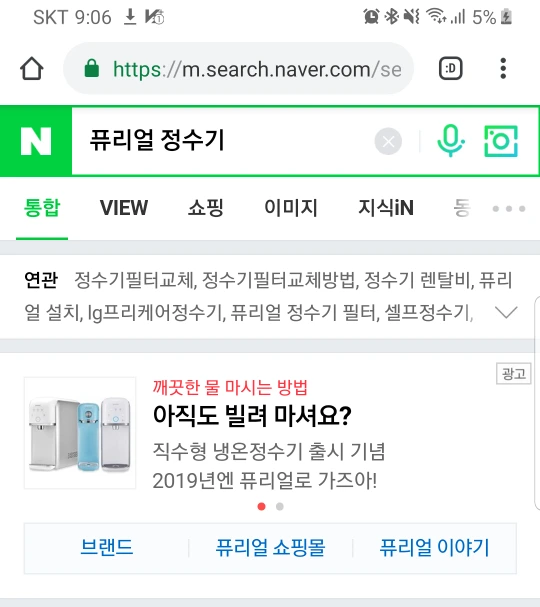처제네에서 본 정수기를 네이버에서 찾아봅니다.