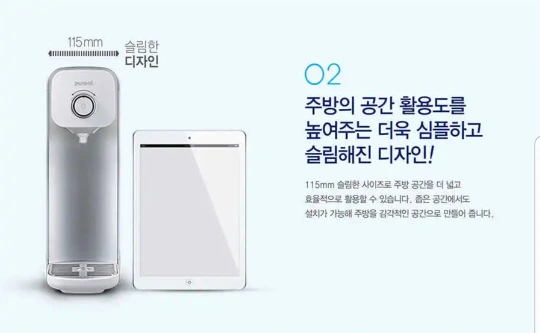 ① 이쁘고 공간차지가 부담없는 정수기랍니다.