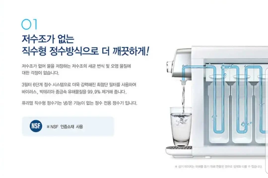 별도 보관하지 않고 바로 정수 된 물이라눈 것입니다.